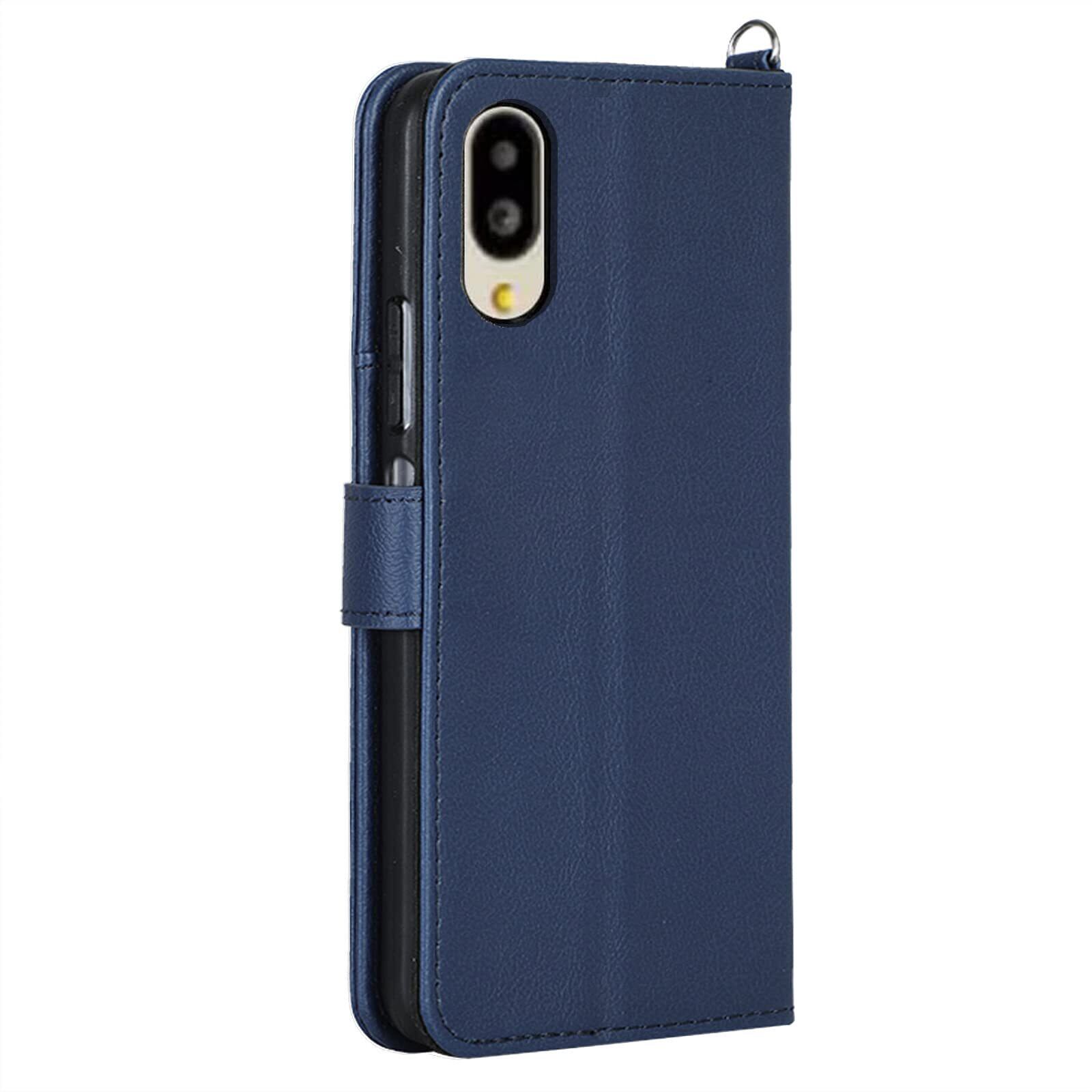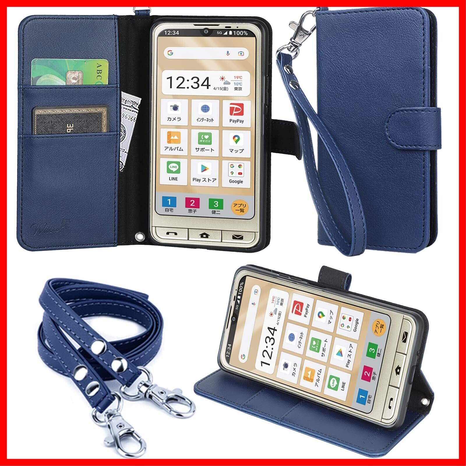 シンプルスマホ6 A201SH シンプルスマホ7 A404SH Basio Active SHG09 Basio Active2 SHG12 対応 手帳型スマホケース (ダークブルー) 牛革調PUレザー (カードホルダー/スタンド機能付き) ストラップ2種付き(ハンドストラップ/ネックストラップ) プレゼント