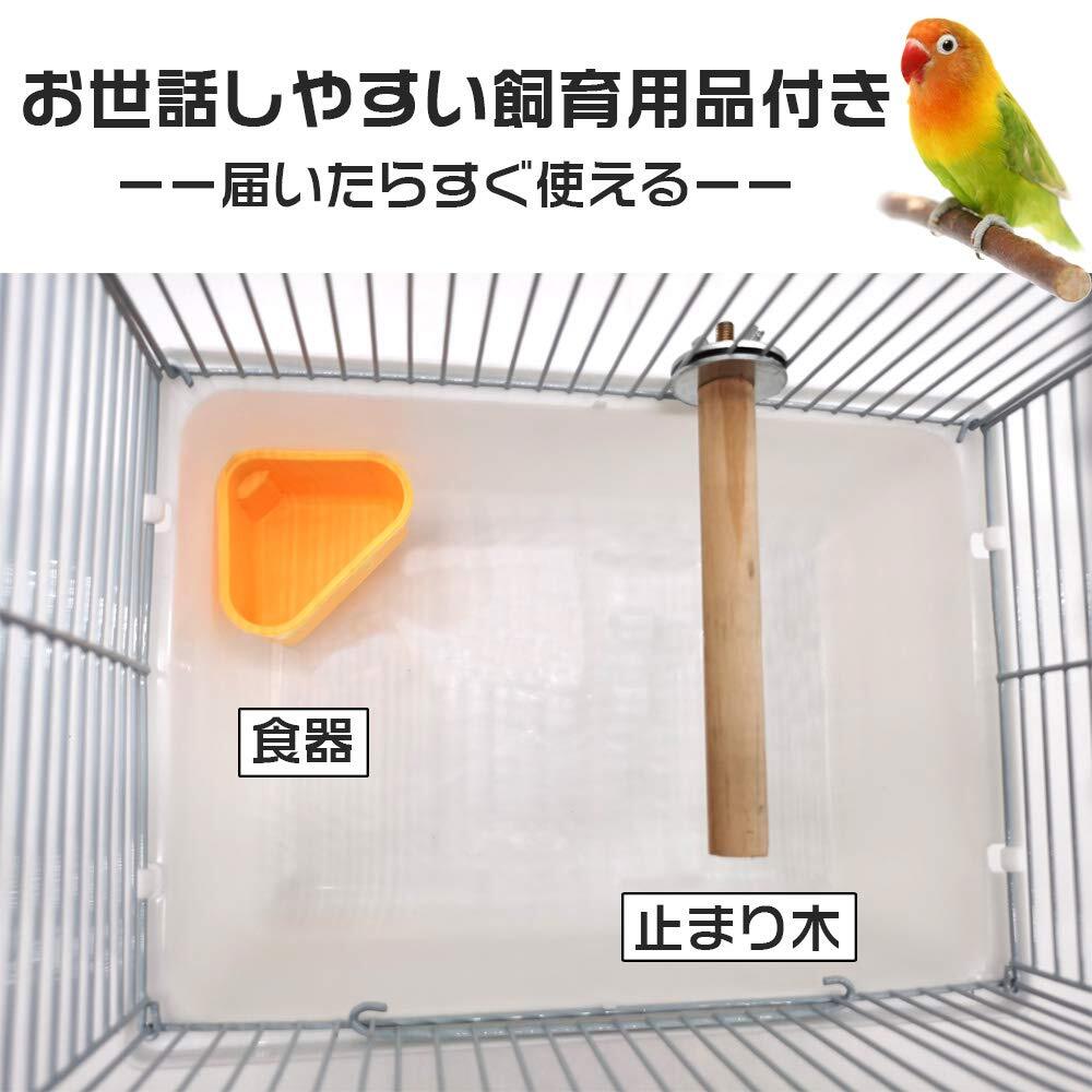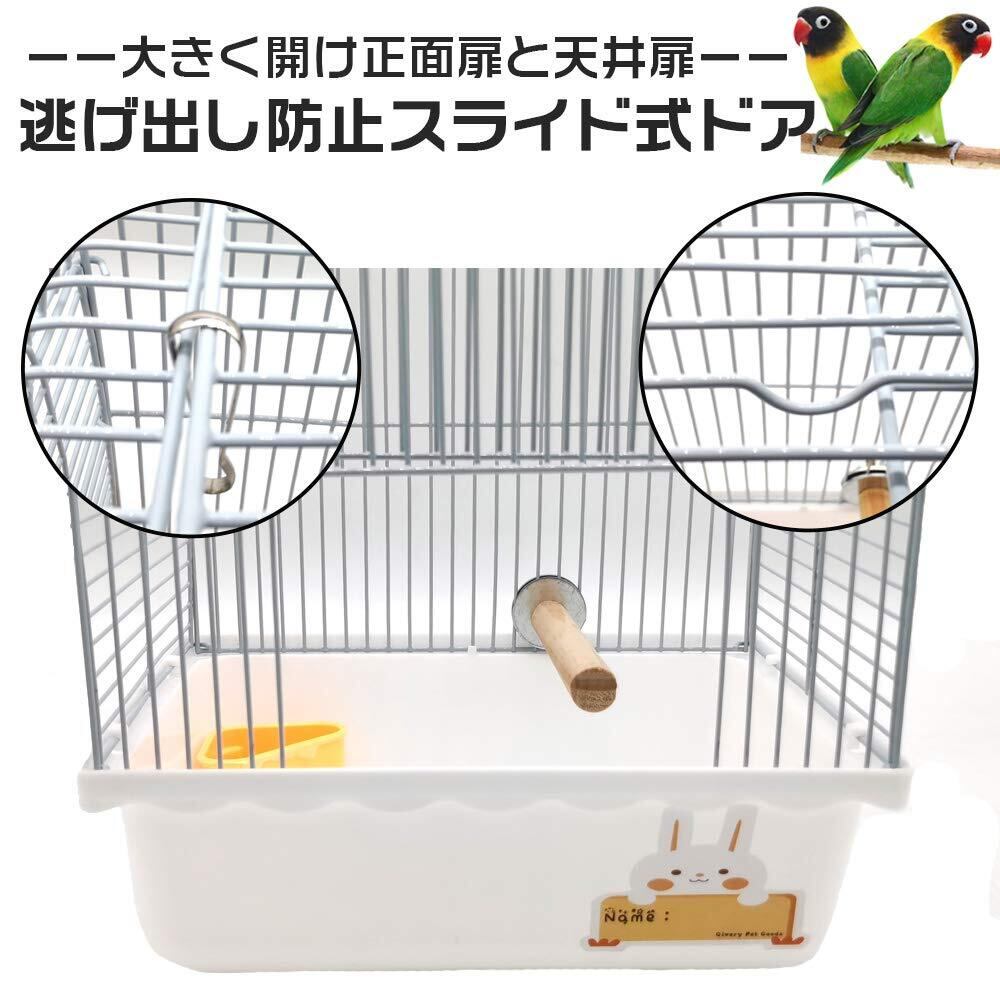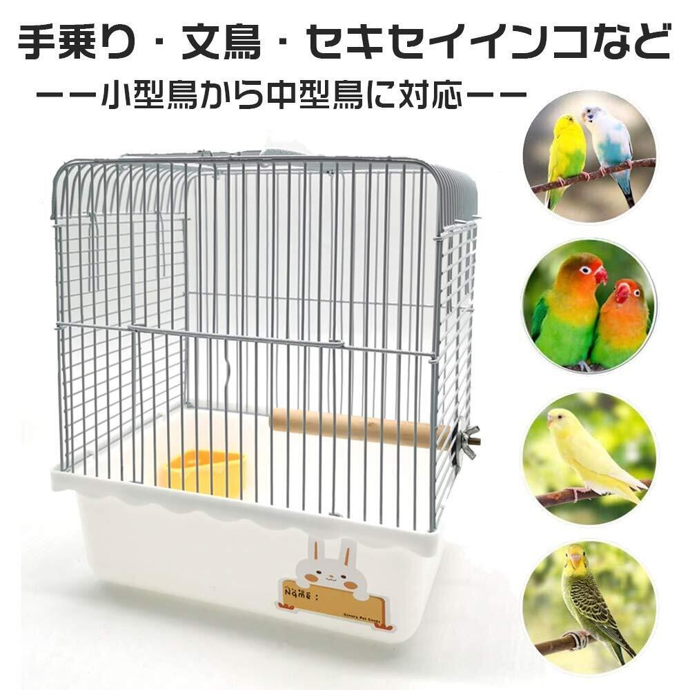 対象:手乗り、十姉妹、文鳥、セキセイインコなど小鳥 セット内容:バードケージ本体、とまり木、餌入れ、ロックナスカン、名前シール