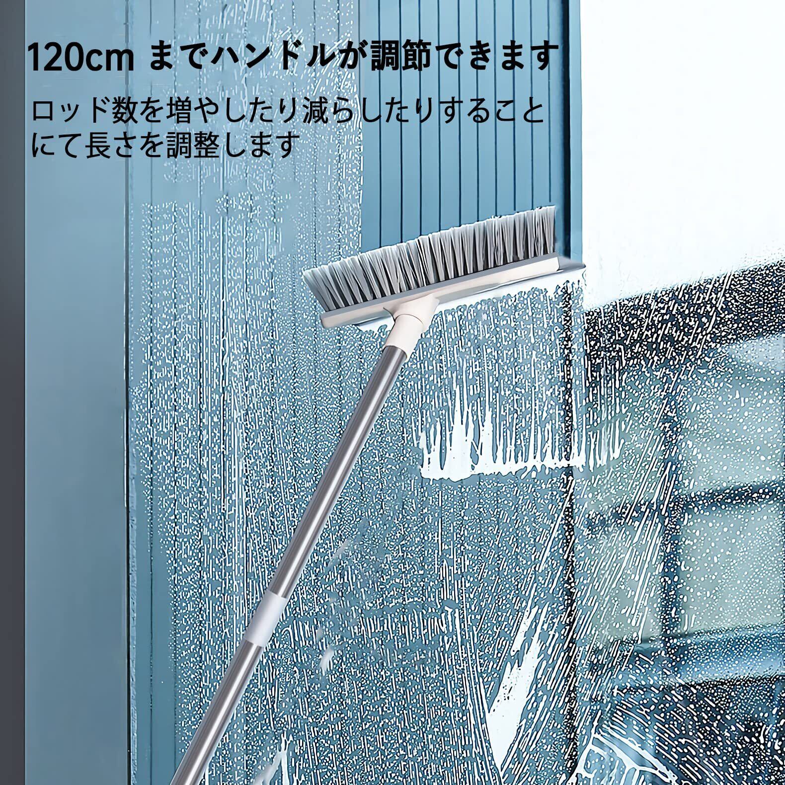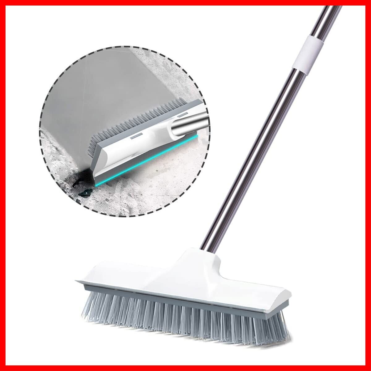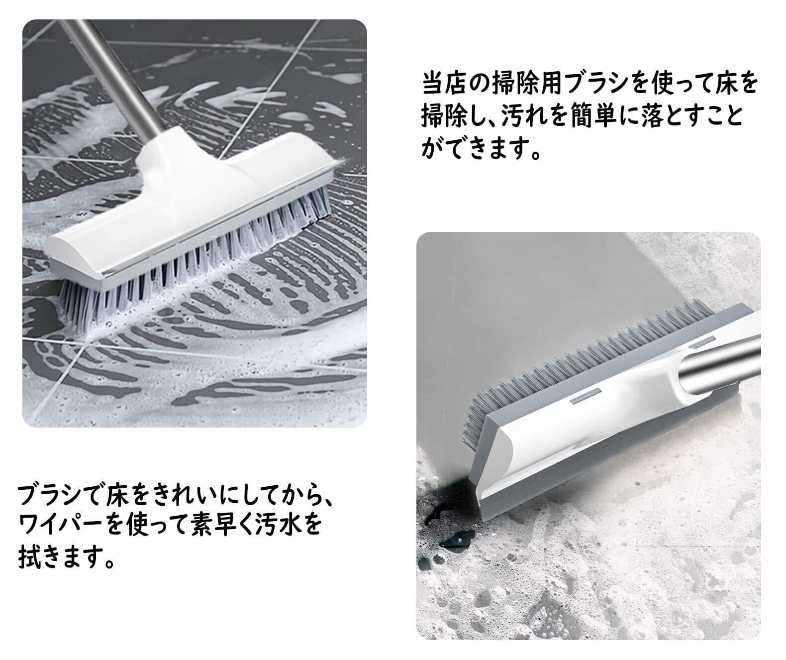 デッキブラシ 2 in 1 水切りワイパー ベランダ掃除用ブラシ ウォータースクレーパー 3段長さ調節可能 タイルブラシ 屋外 玄関 プールといっ掃除用品 風呂掃除
