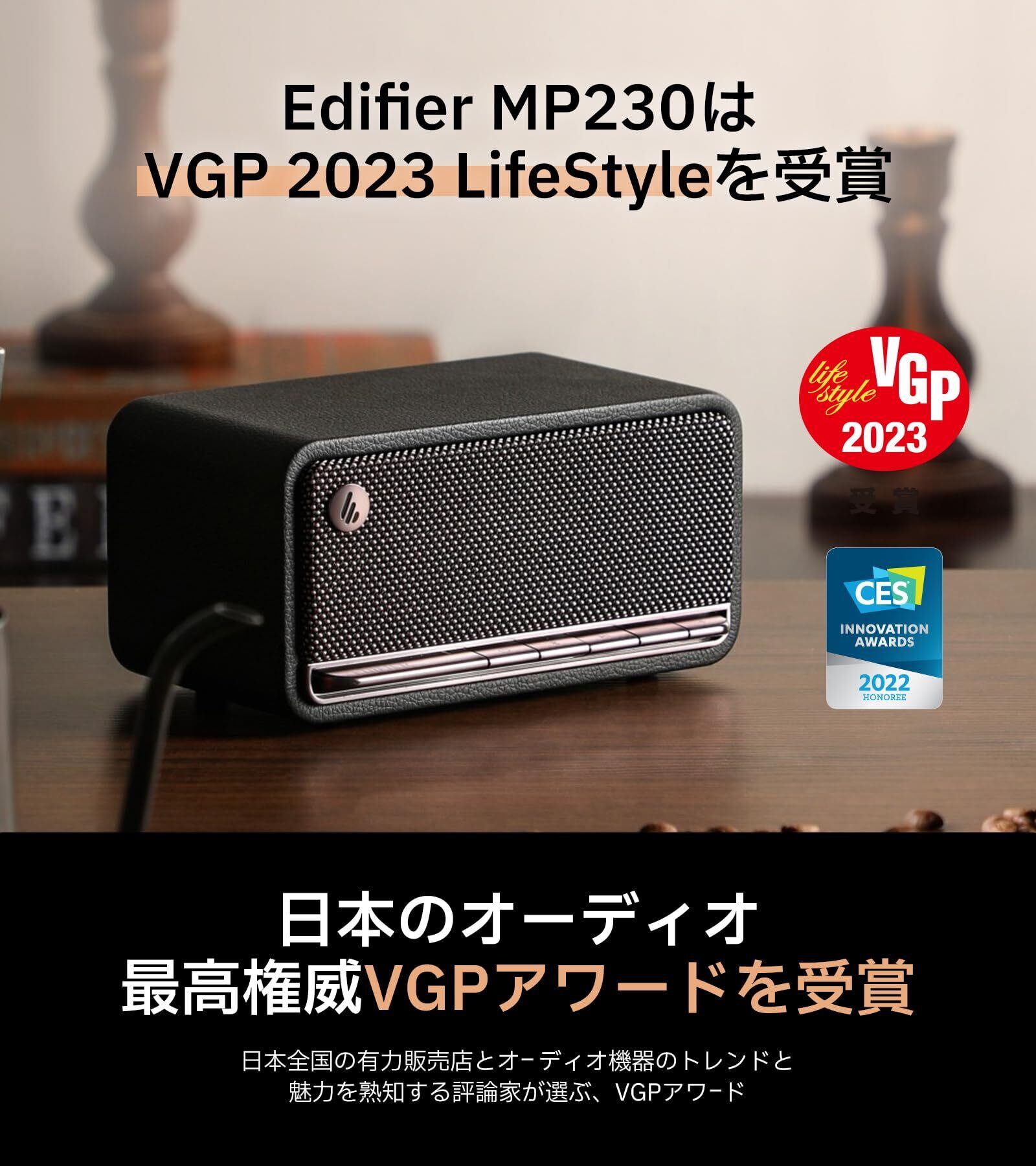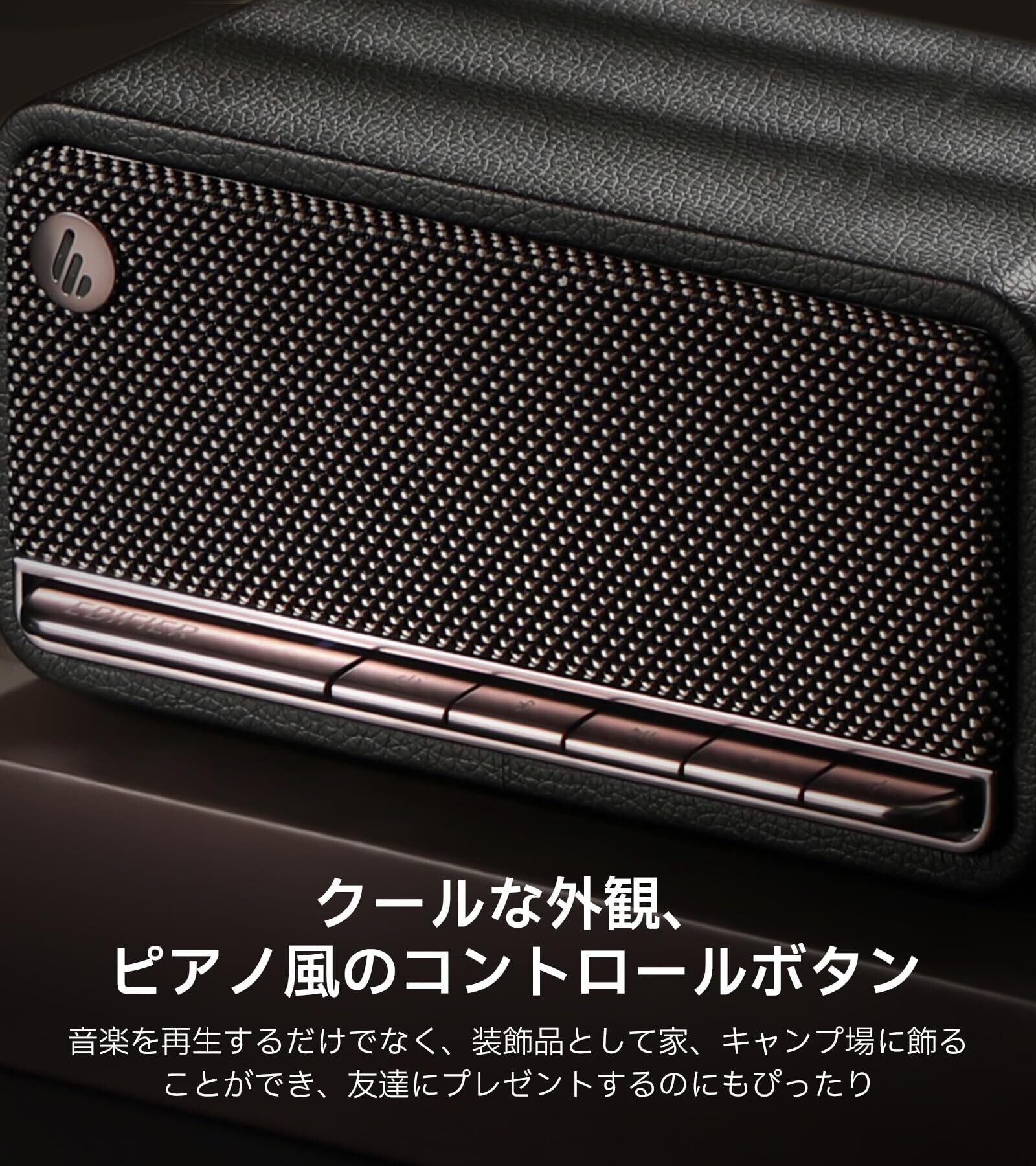 「VGP2023受賞」Edifier MP230 スピーカー ワイヤレス Bluetooth ポータブル MDF木製 小型 卓上型スピーカー 充電式 Type-C/TFカード/AUX対応 9時間音楽再生 レトロ クラシック プレゼント 黒