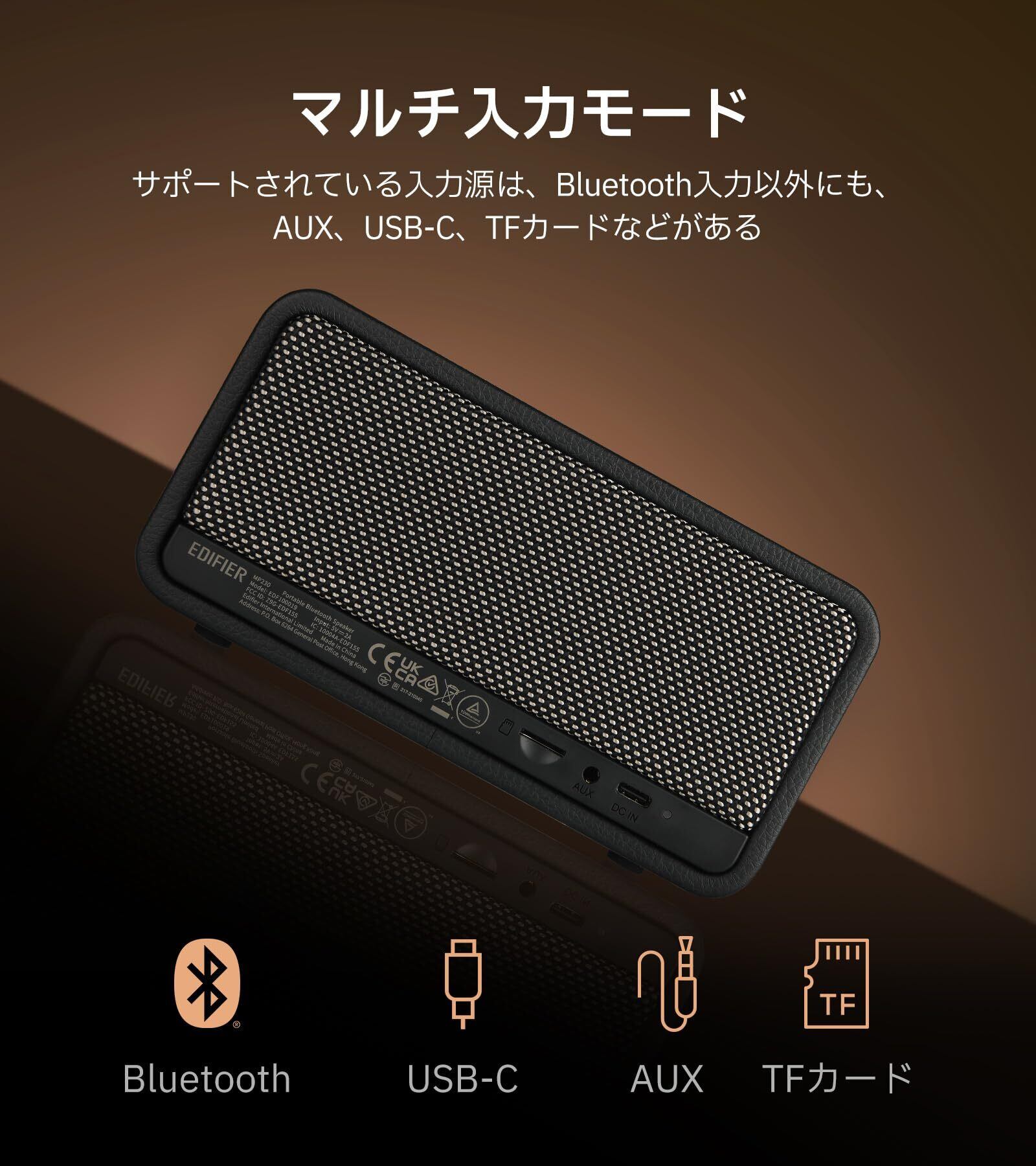 「VGP2023受賞」Edifier MP230 スピーカー ワイヤレス Bluetooth ポータブル MDF木製 小型 卓上型スピーカー 充電式 Type-C/TFカード/AUX対応 9時間音楽再生 レトロ クラシック プレゼント 黒 | hananoki