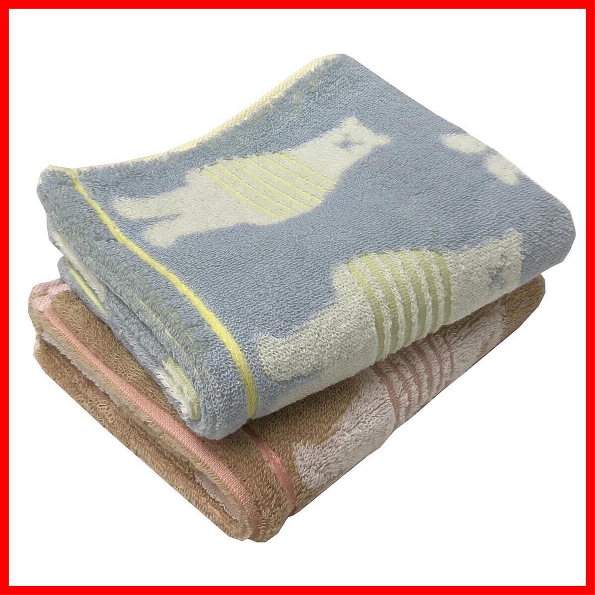 今治タオル フェイスタオル 2枚組 ボーダーベアー柄 ブラウン・ブルー かわいい アニマル柄 34x80cm 吸水 ふわふわ 吸水 日本製 幼稚園 保育園 お昼寝