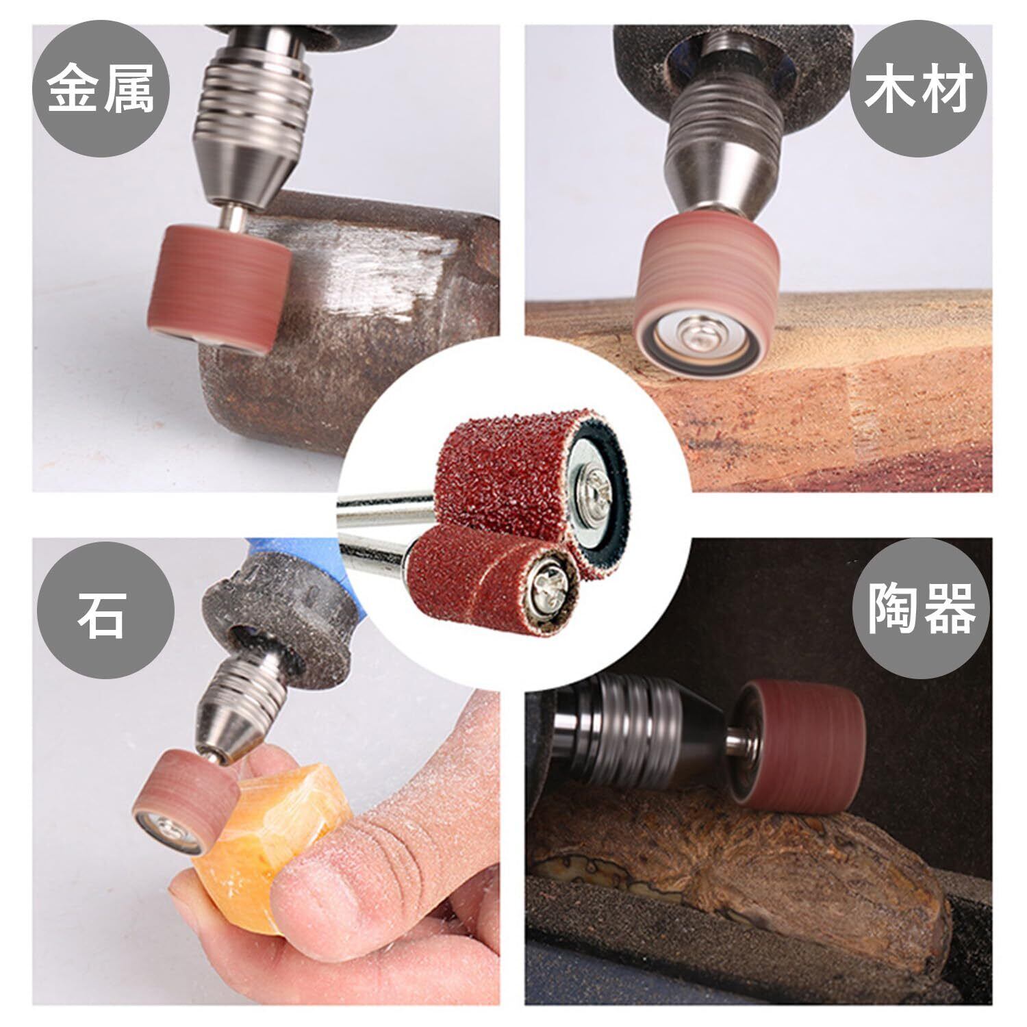 サンディング バンド ドラム 研磨 サンドペーパー ルーター ヤスリ 120 240 400 番手 各15個 軸 2.35mm 各3本