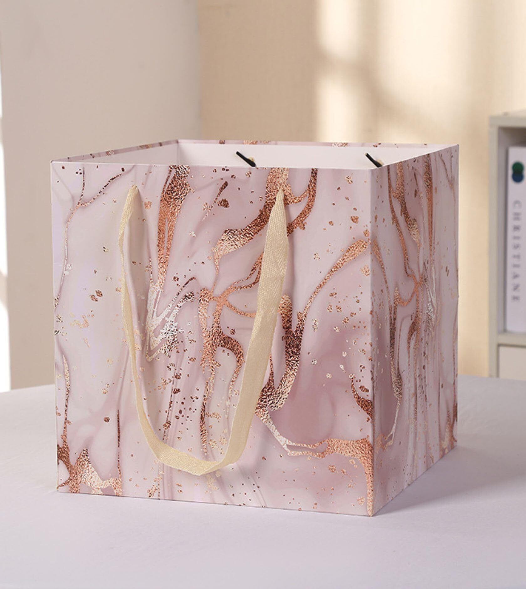 cobalt planet 紙製ギフトバッグ 紙袋 スクエア 正方形 マチ広紙袋 マチ広 大 厚手 (ピンクゴールドマーブル)