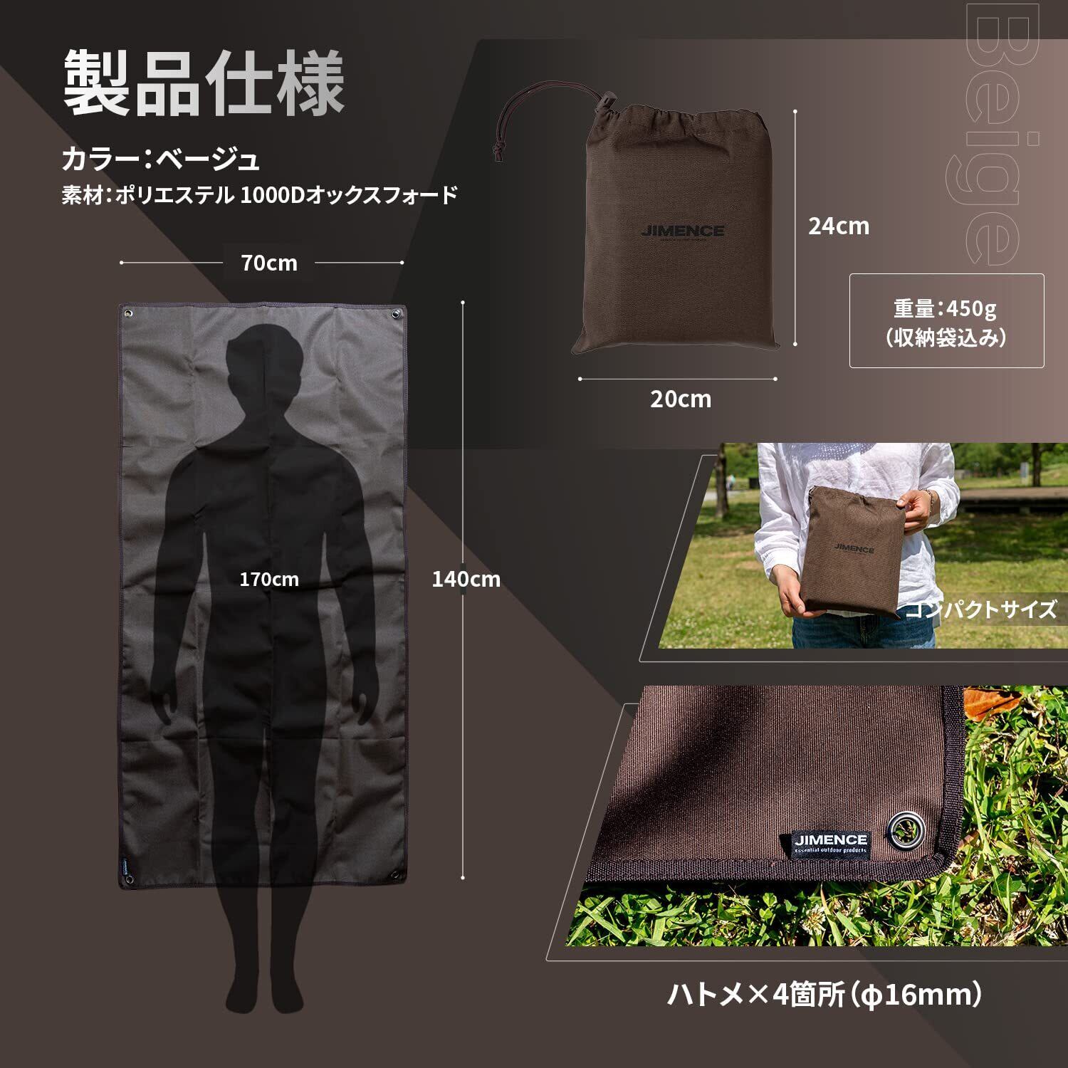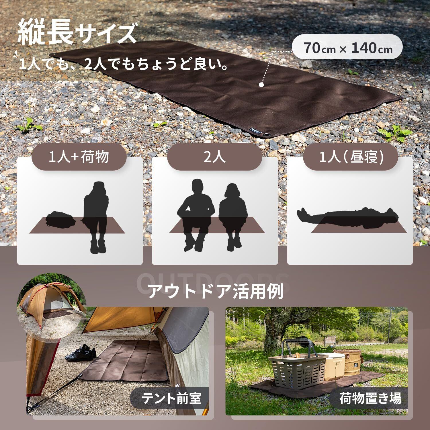 JIMENCE(ジーメンス) レジャーシート 1人 2人用 厚手 コンパクト 70×140cm 防水 両面撥水 収納袋付き (ブラウン)