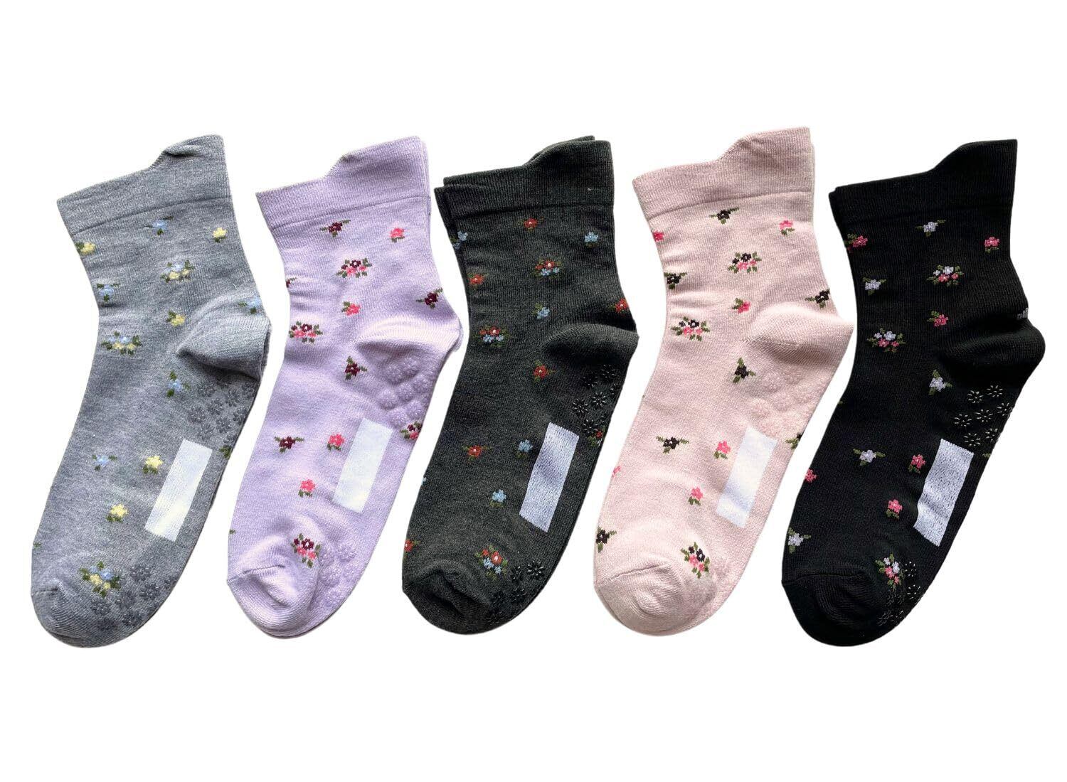[モードセレクト] ソックス レディース 滑り止め付 5足 靴下 介護 名前が書ける 片手で履ける 靴下 ゆったり 施設 病院 綿混 5足セット G10