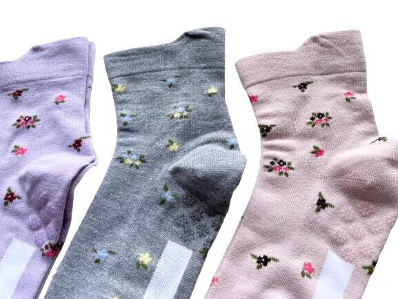 片手で履ける、突起部分をつまみ上げるだけで簡単に履く事ができます。介護用に最適な靴下です。