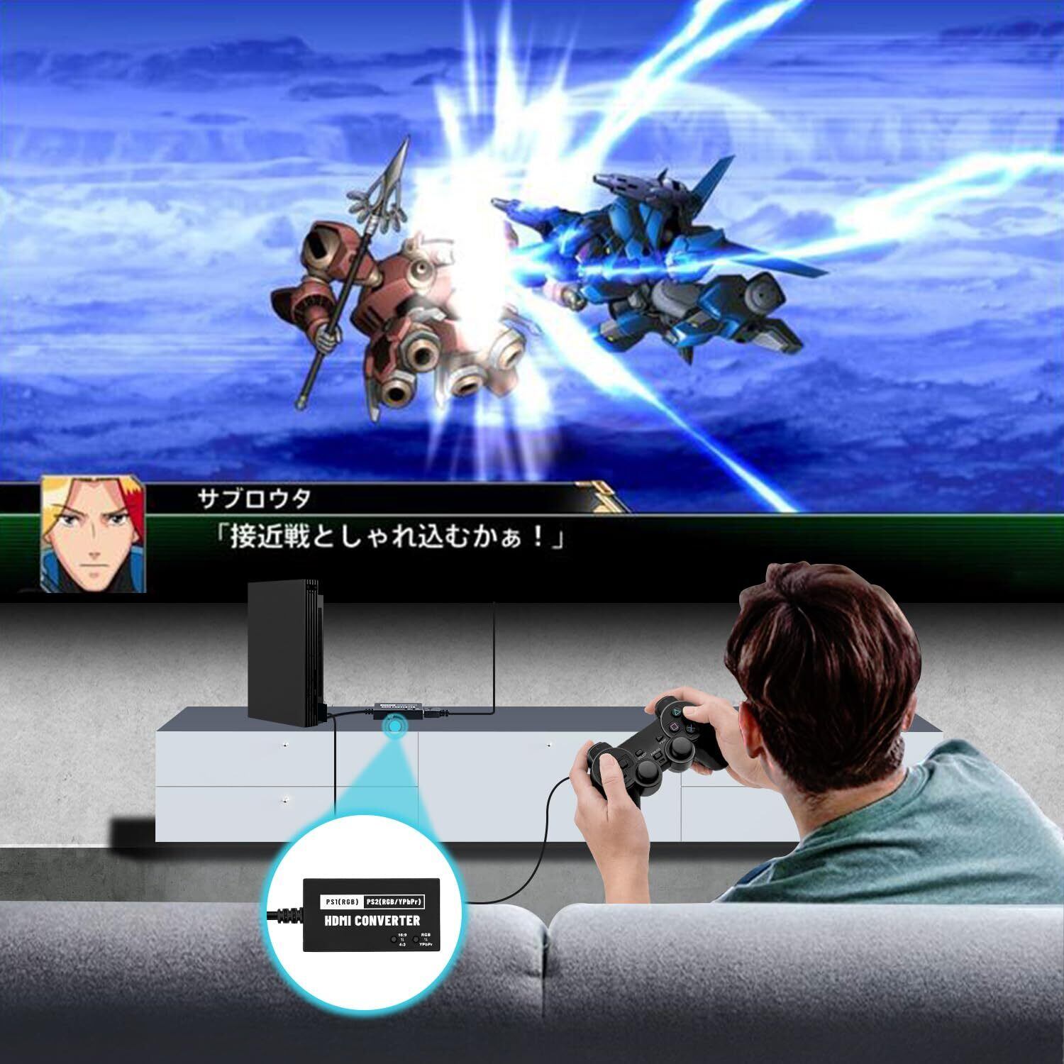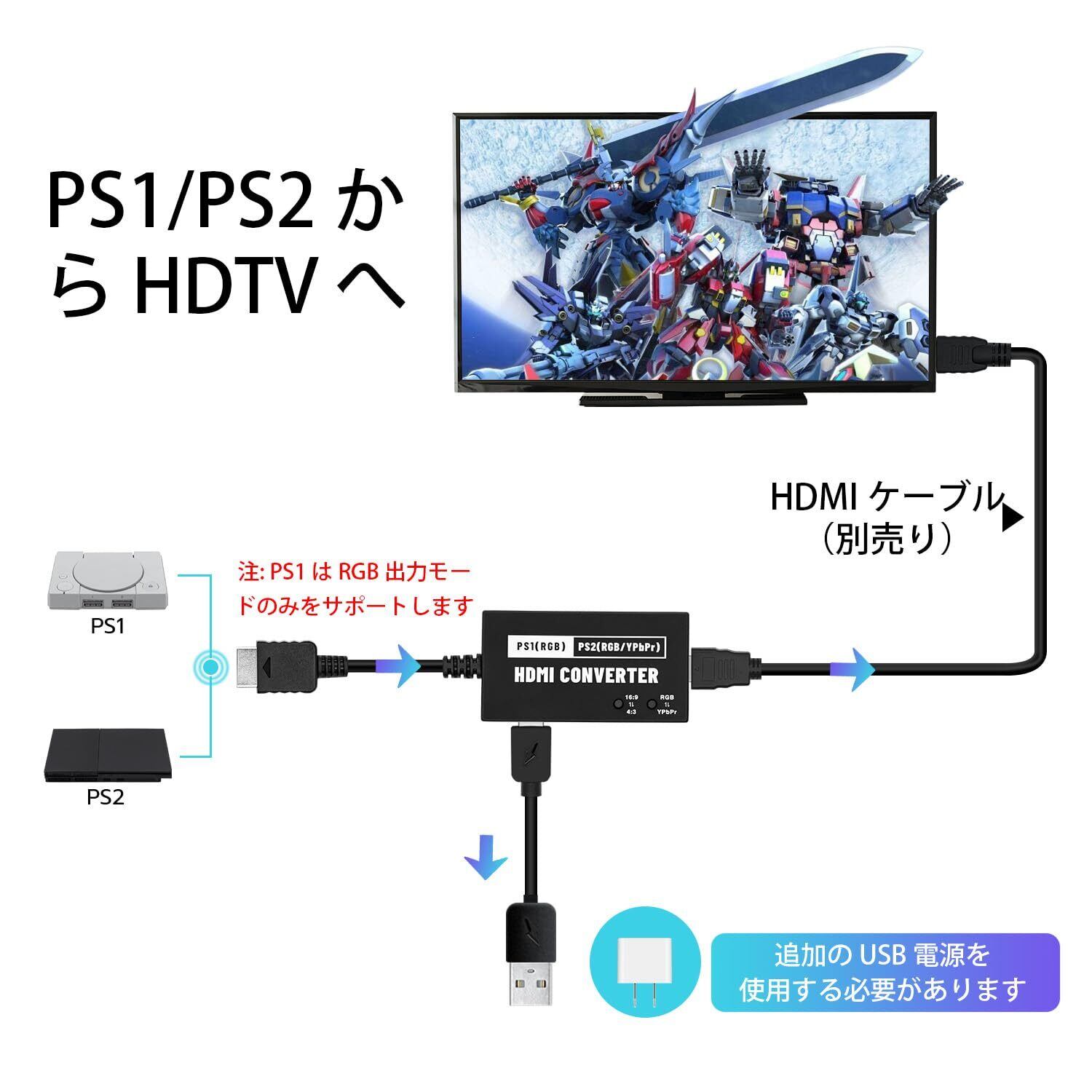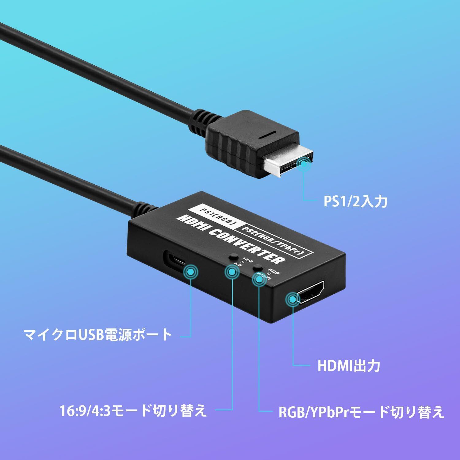 新型 PS1/PS2専用 RGB/YPbPr to HDMI 変換コンバーター 720p 4:3から16:9変換可能 HDMI変換 PS2コンバーター-PS1/PS2対応-ブラック | hananoki