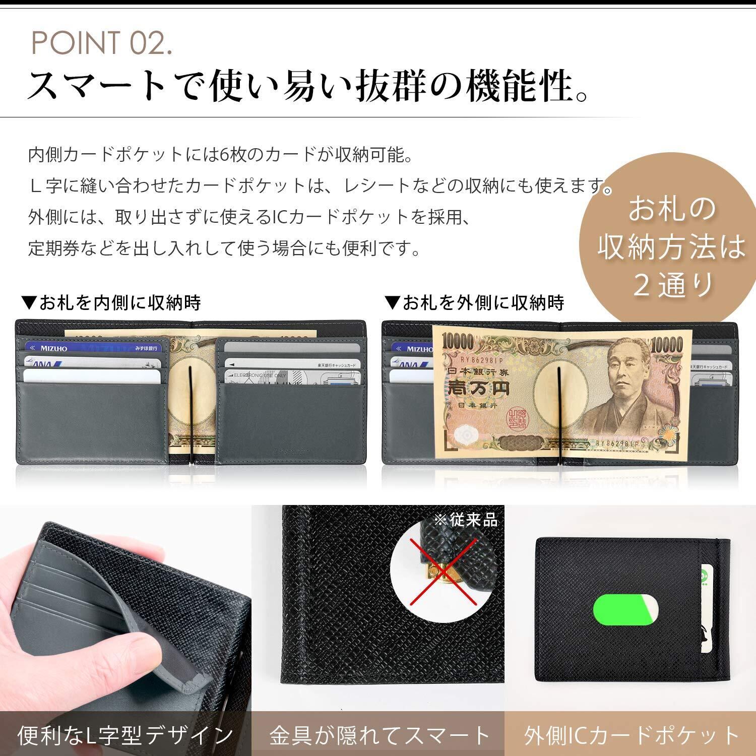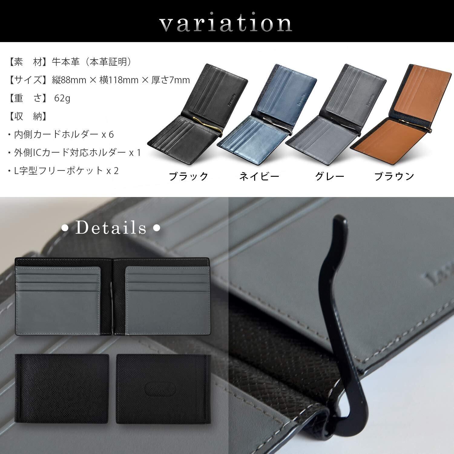 [ルスリール] マネークリップ 出来るビジネスマンのための 薄くて軽いレザーマネークリップ メンズ