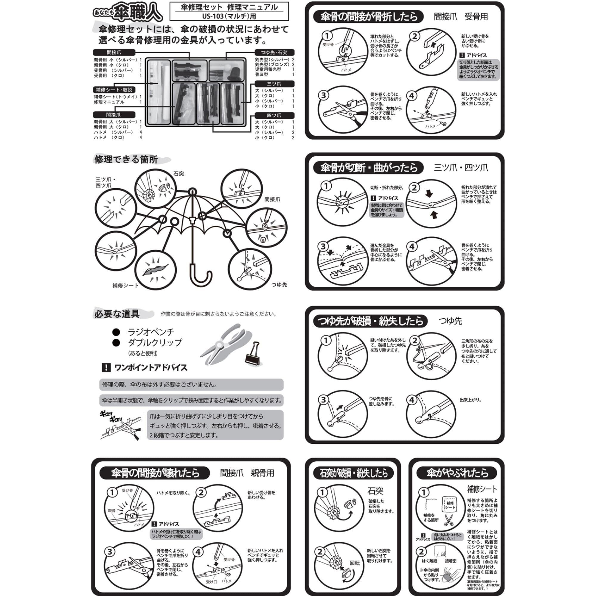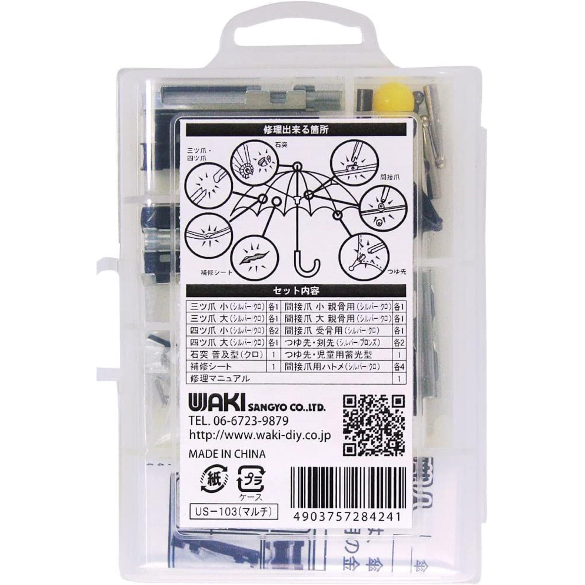 和気産業(Waki Sangyo) 傘修理セット 傘 部品 修理 US-103 (マルチ) 23点セット シルバー 黒 1.5×9.0×13.5cm