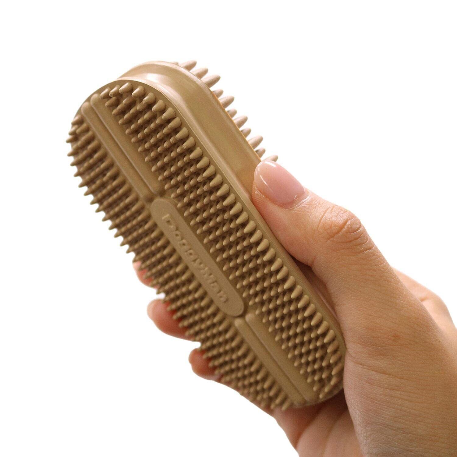 部位に合わせて使い分けができる両面仕様の抜け毛取りラバーブラシ。