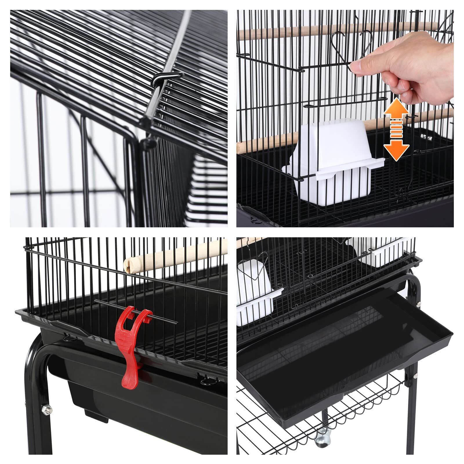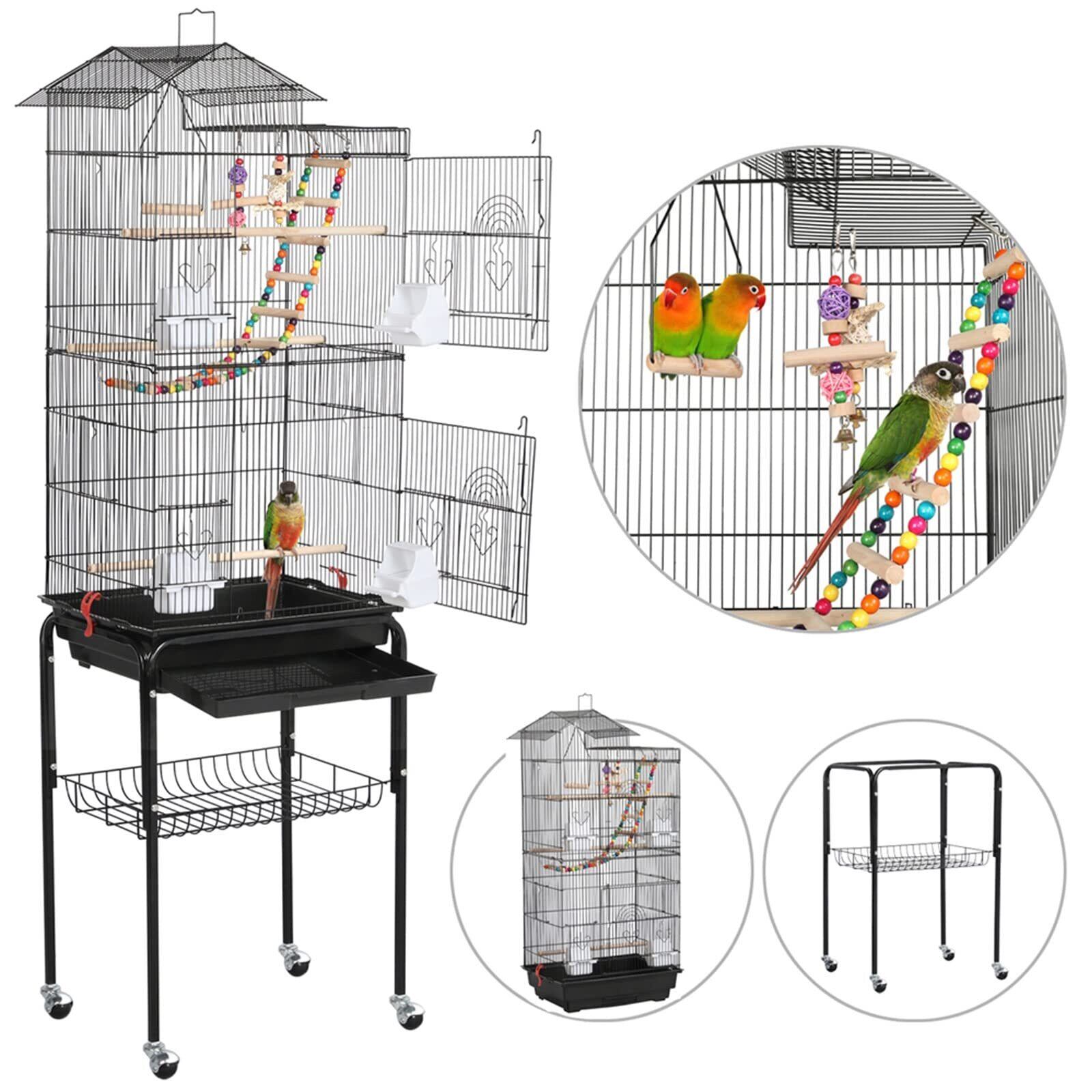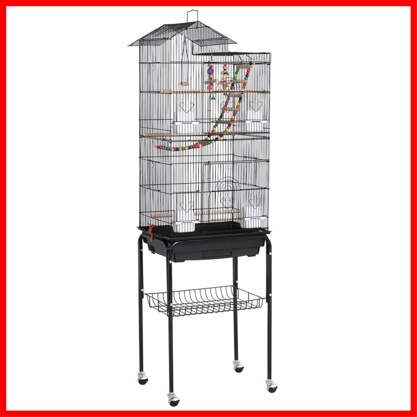 Yaheetech 鳥かご 鳥ケージ スタンド付き 46x35.5x158.5cm 大型 高強度 豪華ケージ 大きい 鳥小屋 バードケージ ブランコ付き フルハウス ペット用品 おもちゃ付き セキセイインコ インコ オウムケージ オカメ コガネメキシコ コザクラ マメルリハ ウロコ アキクサ ブラック | hananoki