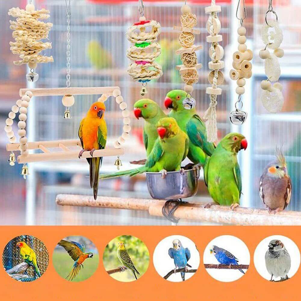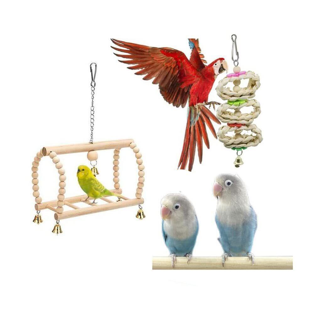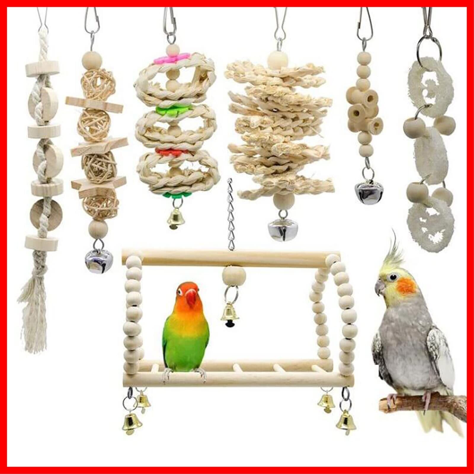 【7個セット】鳥用スイング、ベル、止まり木、噛むおもちゃなど、7種類のおもちゃがセットになっており、鳥たちの遊び時間を楽しさ倍増!