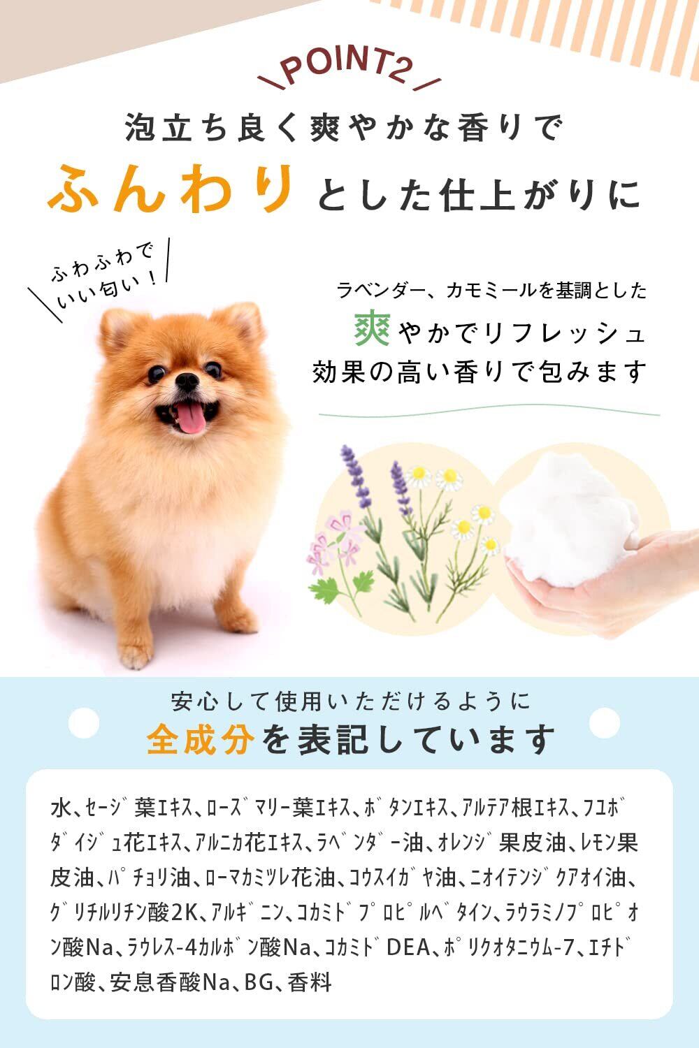 【日本製】企画から開発まで徹底的な品質管理の下おこなっています。大切なワンちゃんに使うものだから、全成分を記載しております。