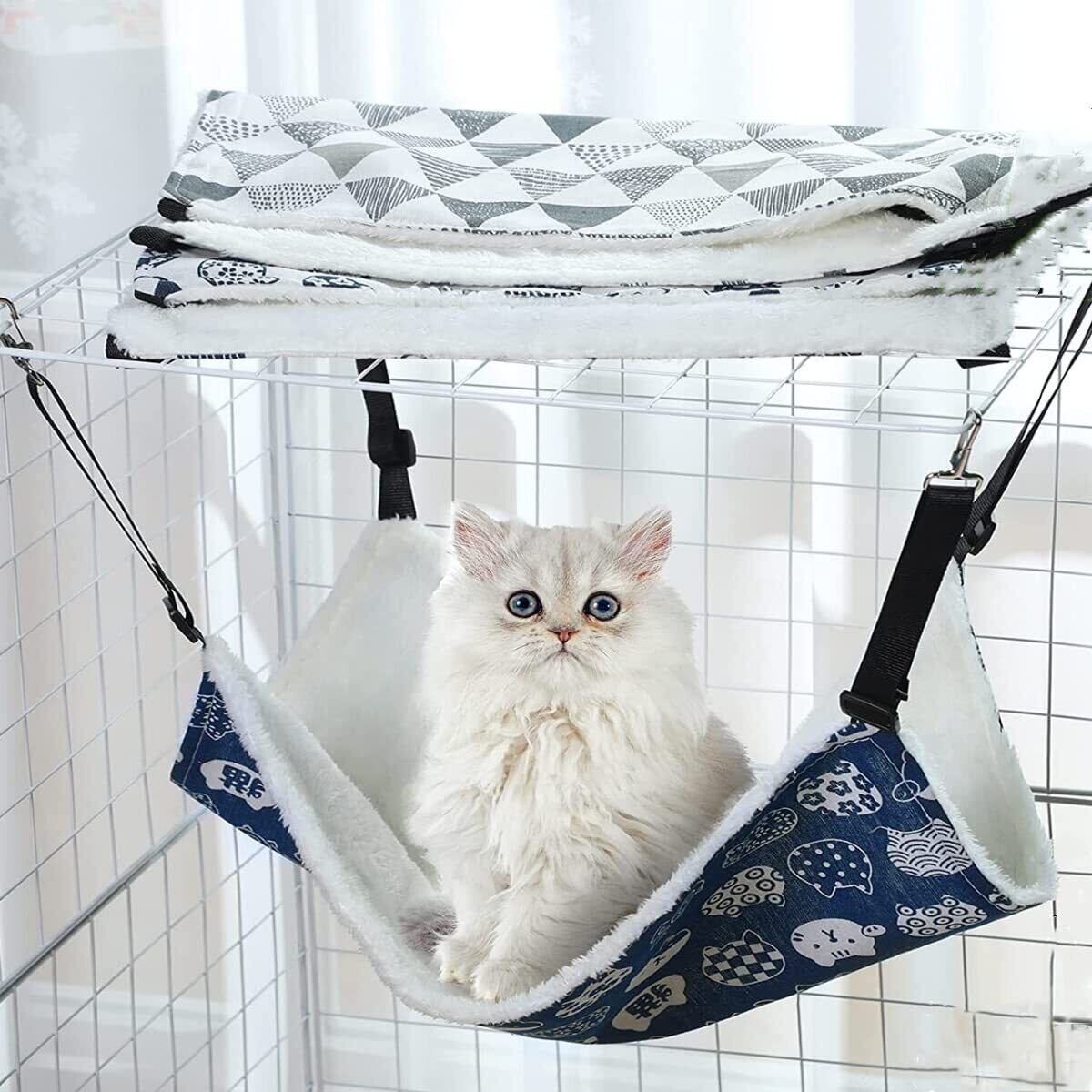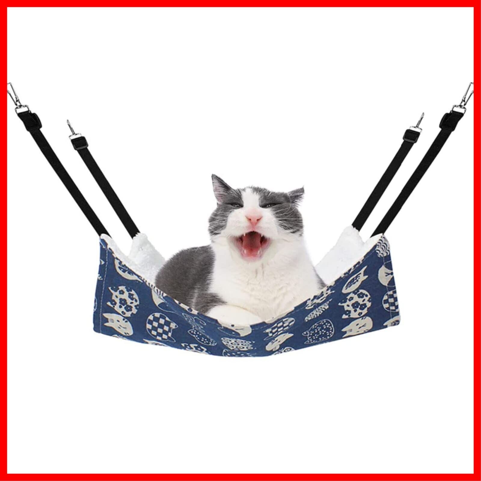 猫 ハンモックはんもっくキャット 椅子 ケージ用 大きい 耐荷重10KG サイズ調整可能 58cm x 48cm、キャット 椅子 ケージ用 大きい 耐荷重6KG サイズ調整可能 48cm x 38cm ペット 遊び場 通気性 金具丈夫 冬夏両用長さ調節可能 両面使用 (ブルー, M) | hananoki