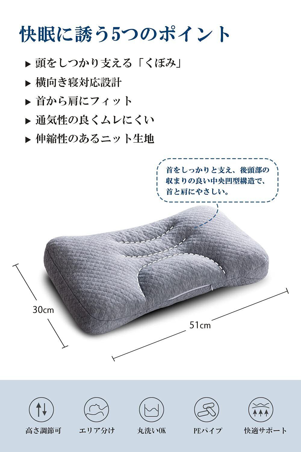 Atoursp【理学療法士監修】パイプ枕 ポリウレタンフォーム 横向き対応 丸洗い可能 肩こりまくら 安眠枕 高さ調整可能 ネックピロー ホース枕 首肩フィット 快眠枕 通気性
