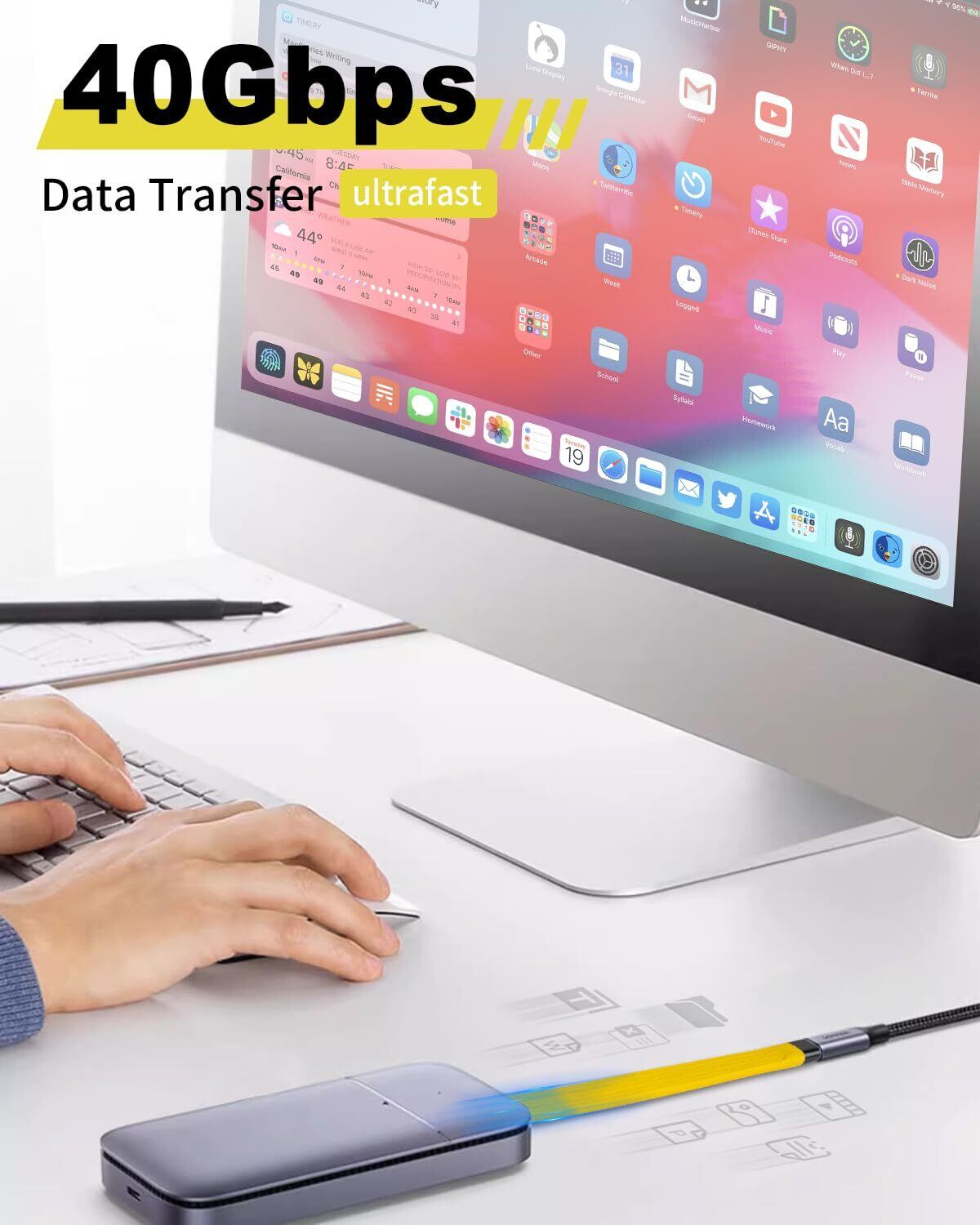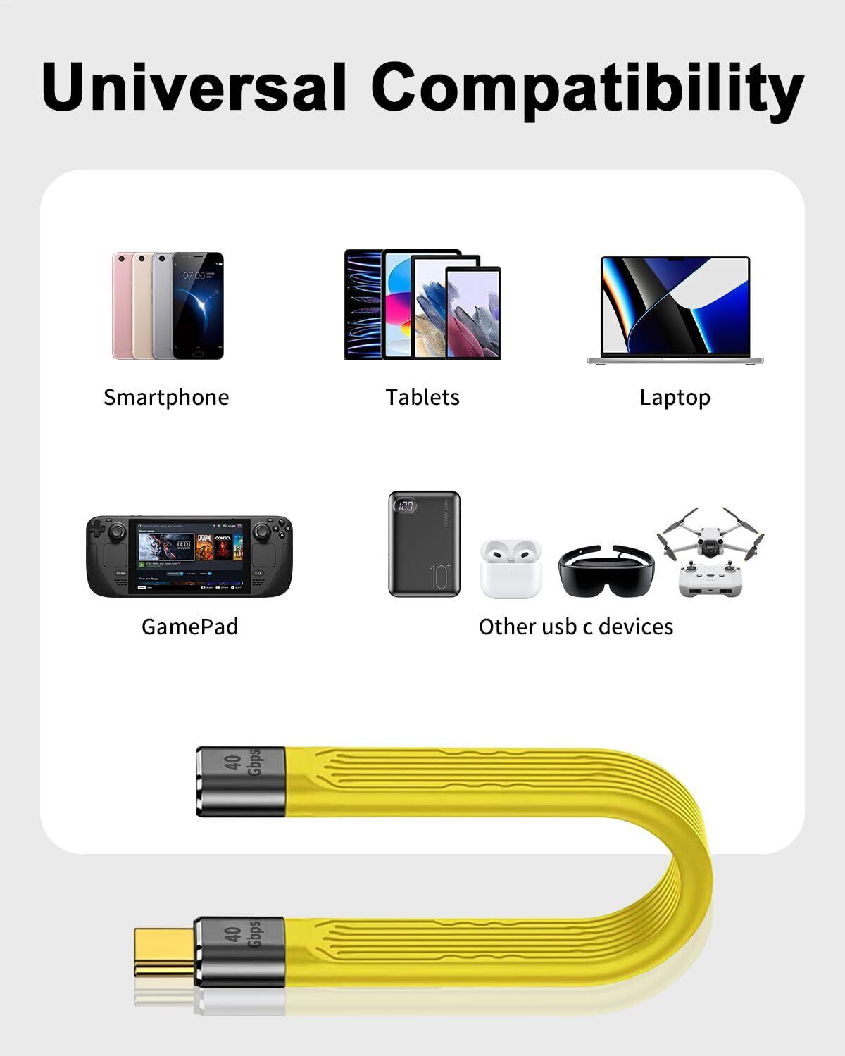 USB Type C 充電ケーブル短いはusb-c 延長ケーブル40Gbpsのデータ同期転送をサポートし、超高速の大容量データ転送能力により、お気に入りの映画、音楽、そして完全なTV番組を数秒で転送できます。Type Cハードドライブ、ポータブルSSD、macbook、アンドロイドオートPCラップトップ、タブレット、テレビ、モニター、スマートフォンなど、ほとんどのUSB Cデバイスに対応しています。