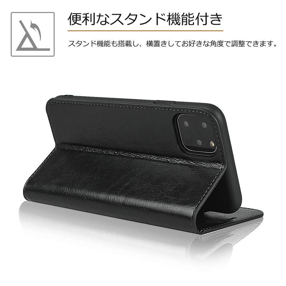 iPhone 11 ケース 手帳型 本革 高級レザー アイフォン11 携帯カバー 財布型 横置きスタンド機能 カード入れ カード収納 耐衝撃 全面保護 軽量 薄型 落ち着いた色 ブラック