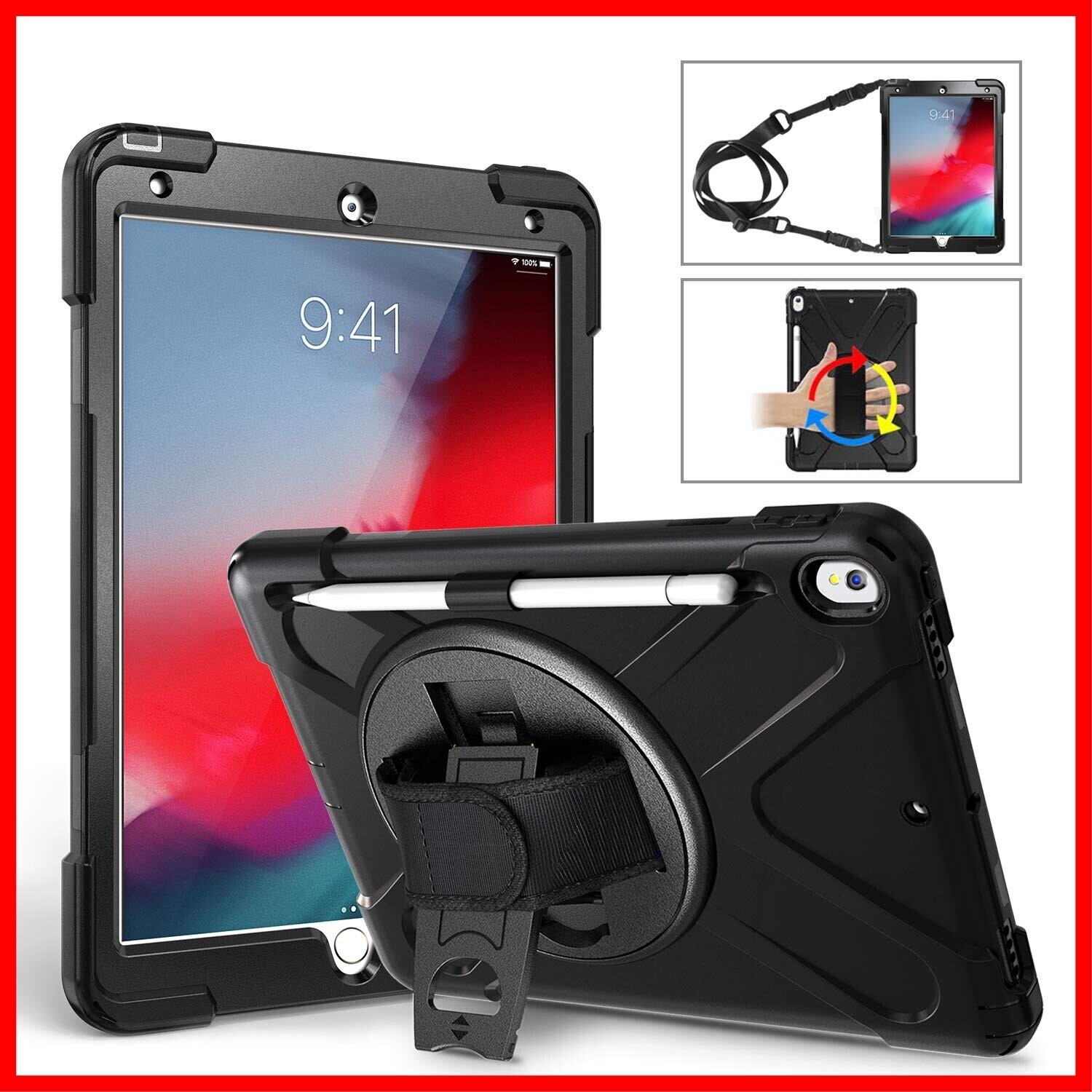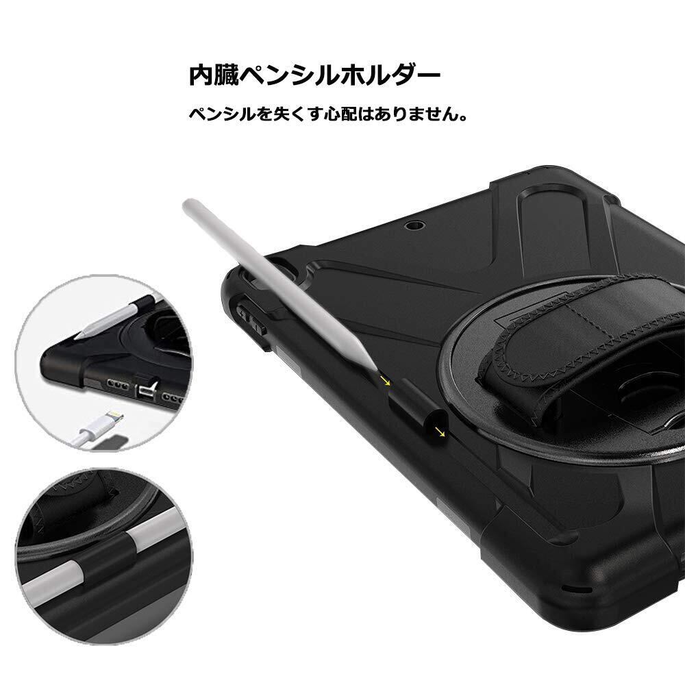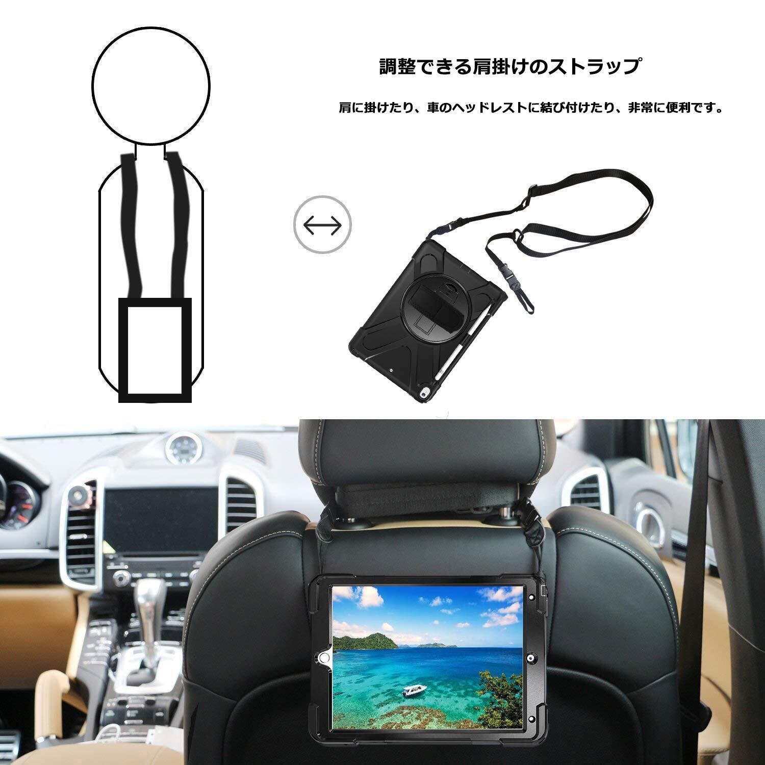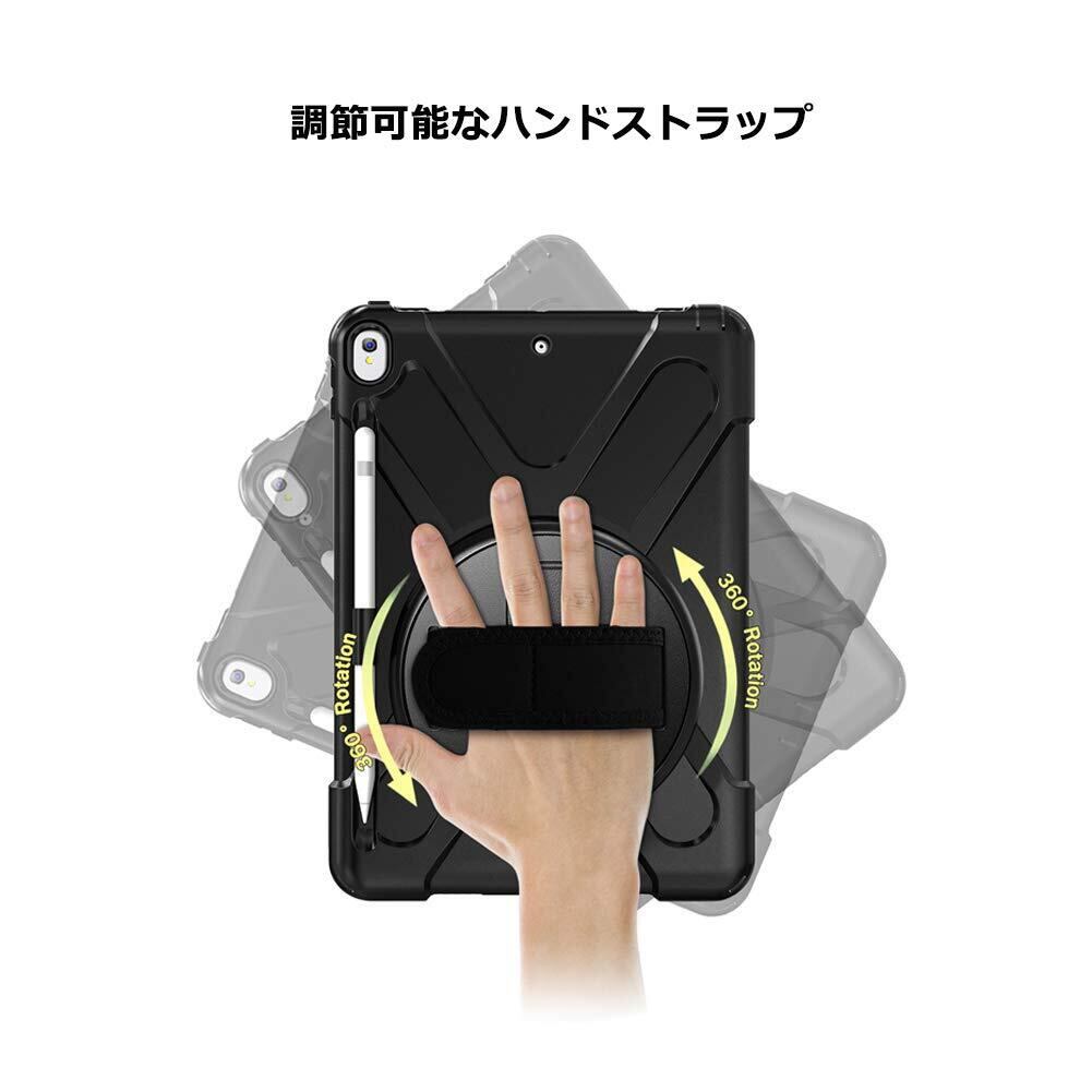 iPad Air3 ケース 2019 耐衝撃/iPad Pro 10.5 ケース 2017 ショルダー Herize ペンホルダー ペンシル収納 360度回転 耐衝撃 縦置き 横置き 頑丈 傷防止 ハンドホルダー スタンド 防塵 肩掛け ストラップ 丈夫 ハード iPad 10.5 ケース ブラック | hananoki