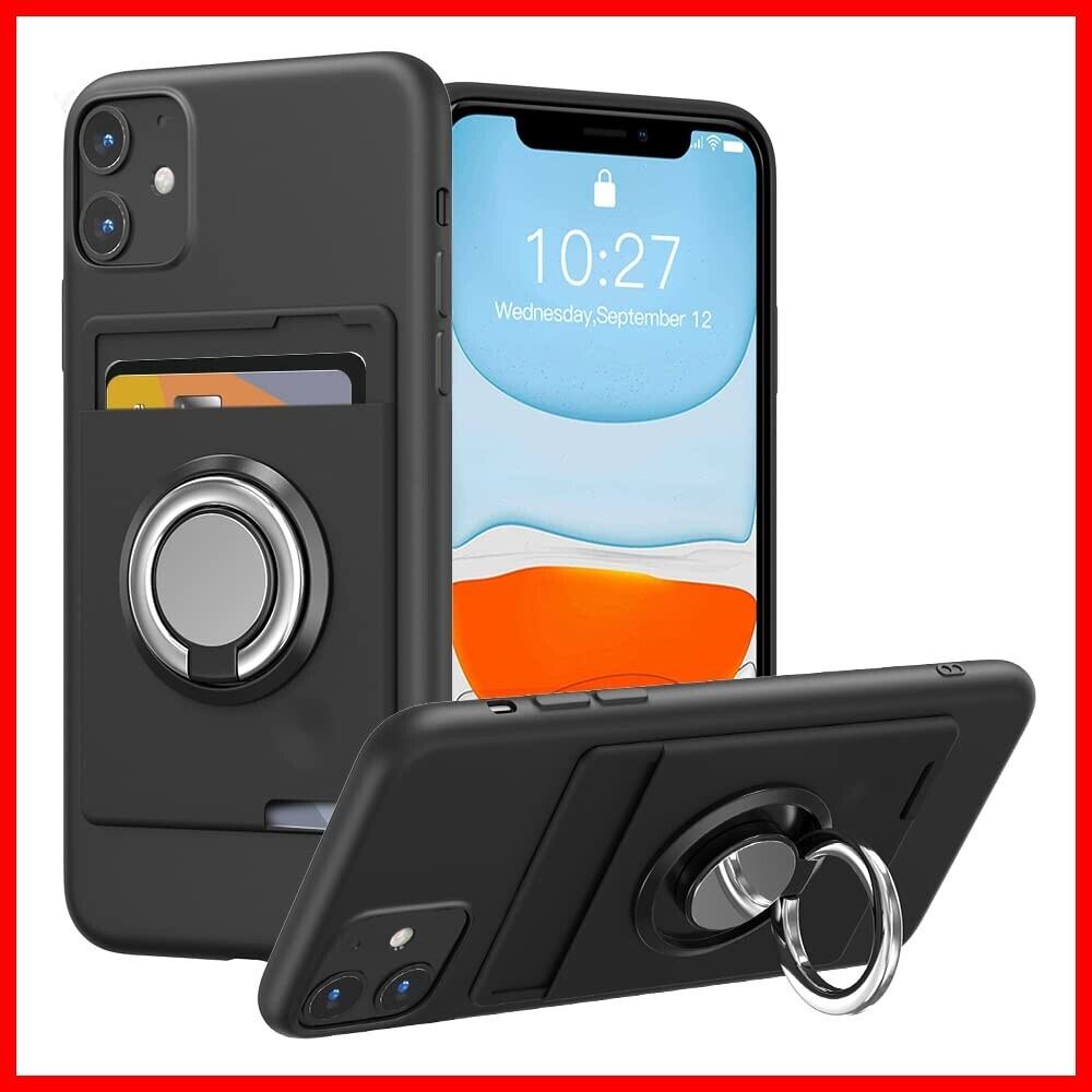 For iPhone 11 ケース リング付き シリコン カード収納 アイフォン 11 用 スマホケース スタンド機能 360°回転リング 耐久 滑り止め 黑