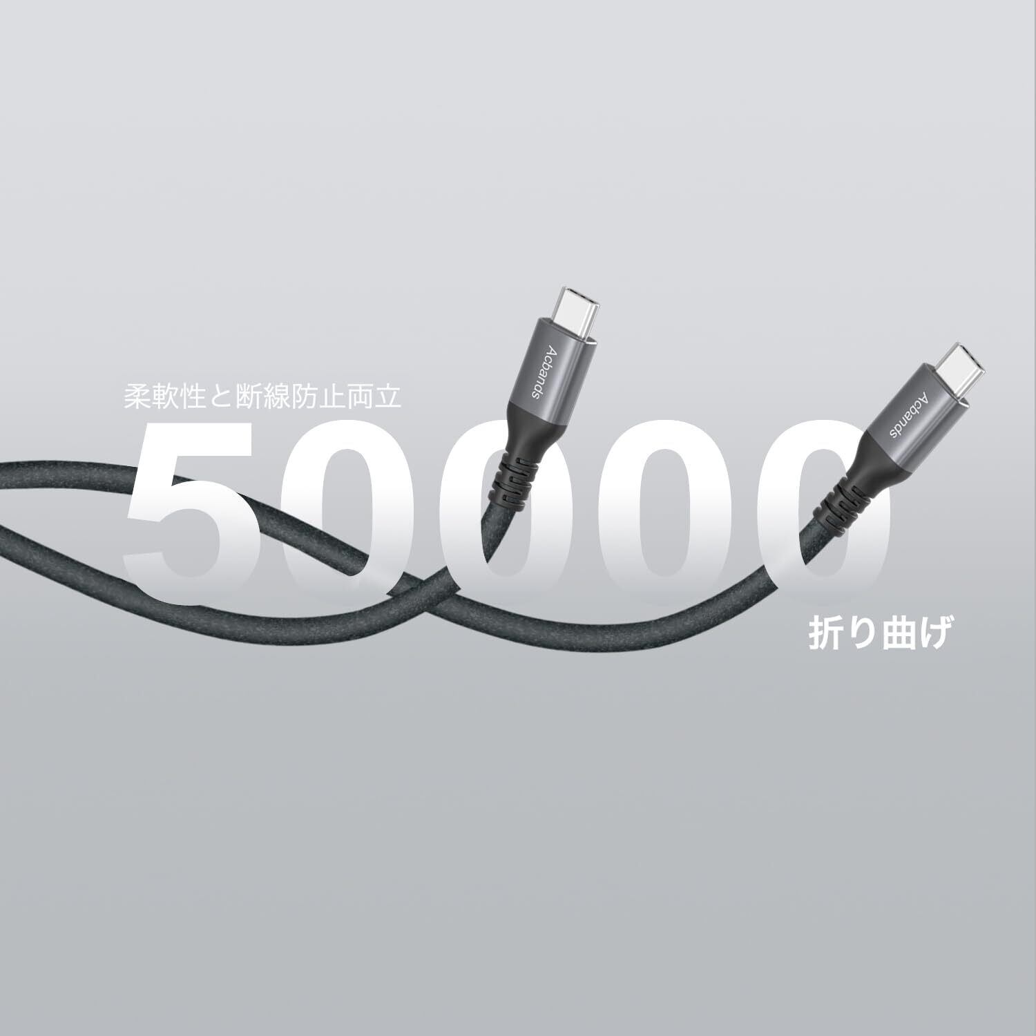 【高い耐久性】このたいぷcケーブルは柔軟性と引張強度が優れ、より柔らかく、軽く、耐久性が高く、50,000回以上の厳しい曲げテストに合格しています。
