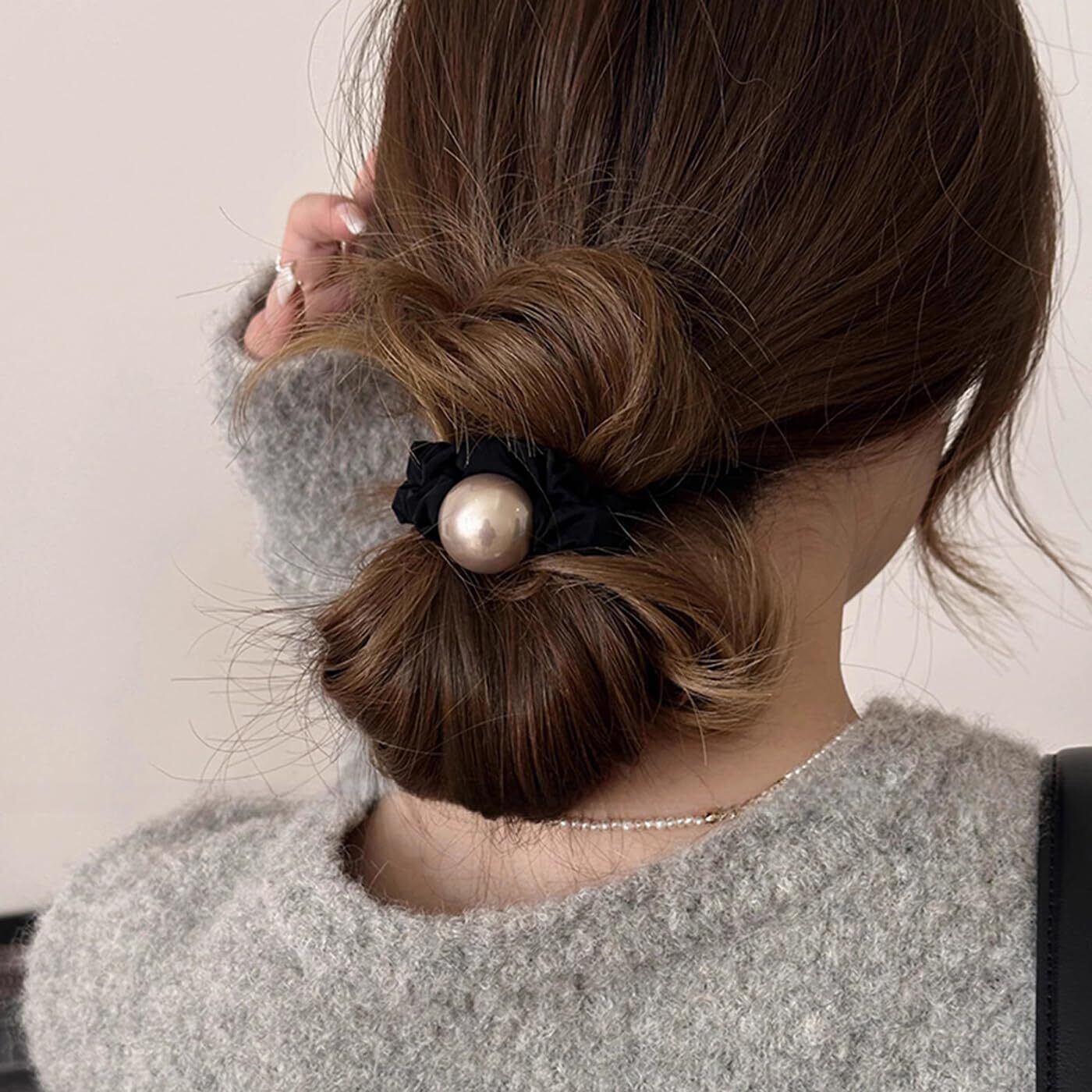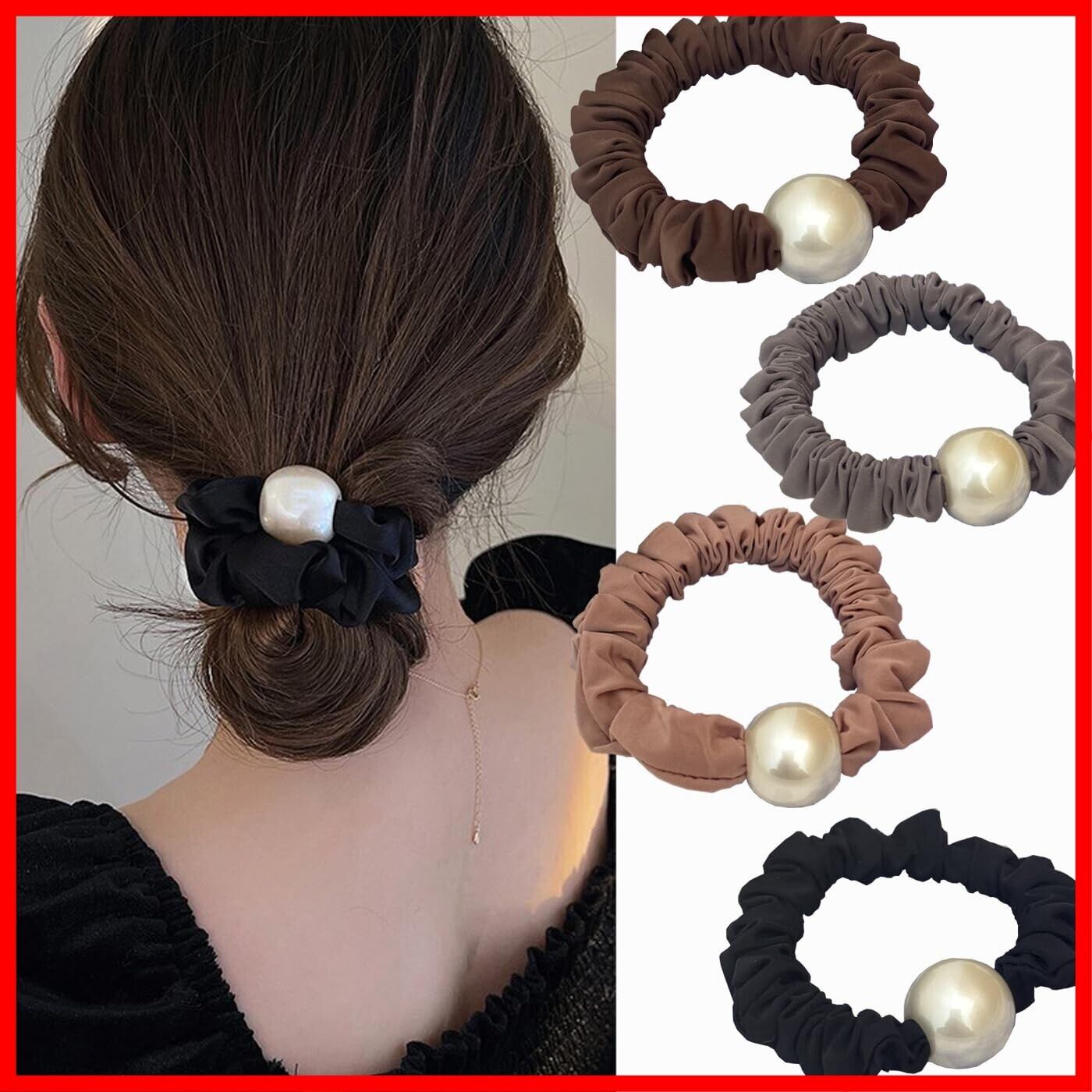 ✿【デザインはシンプル】:シルク シュシュのデザインはシンプルで、美しくて可愛くて、違う服に合わせることができます!どんな季節にもぴったり!大きな真珠の装飾はとても可愛く、女の子や優雅な女性に愛されており、小さな女の子、大きな女の子、女性などに適しています。