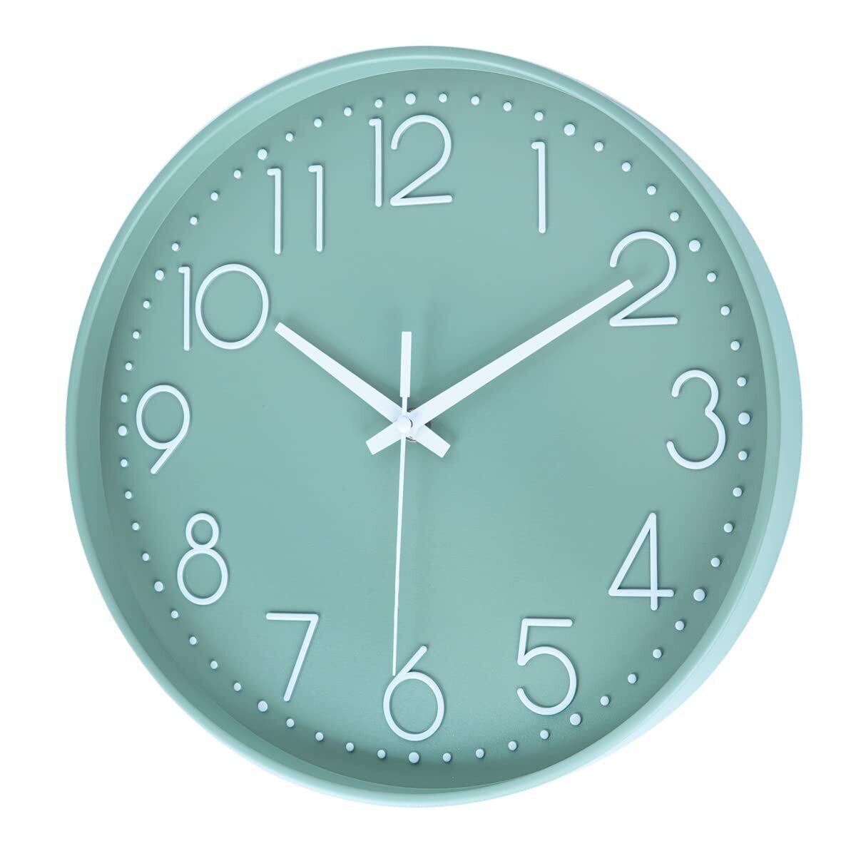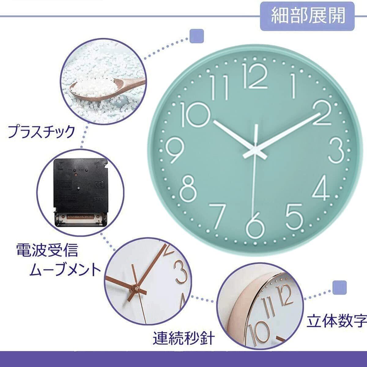 HZDHCLH 掛け時計 電波時計 おしゃれ 壁掛け 時計 北欧 連続秒針 静音 壁掛け時計見やすい 30cm アナログ 夜間秒針停止 (緑)