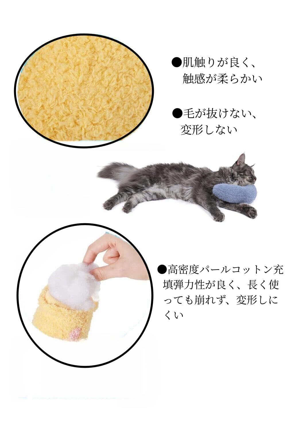 【肌にやさしい生地】ペットネックケア枕3色セットは、高品質のテディウール生地を採用し、無臭無毒、ペットに無害、肌にやさしい、肌触りが繊細で、毛が落ちない。高密度真珠綿充填物は、弾性がよく崩れず、変形しにくい。