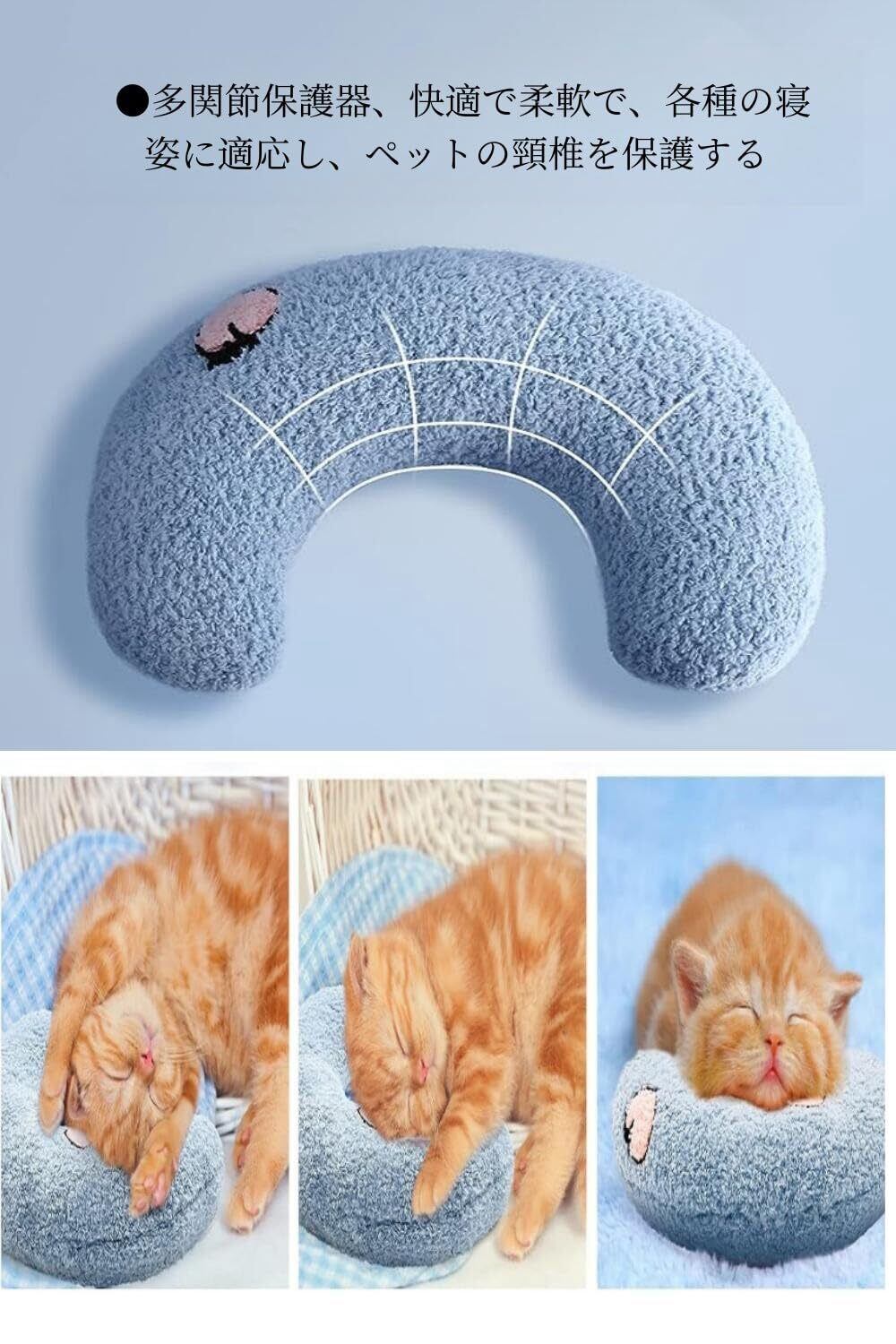 YFFSFDCあごのせ猫枕 3点セット猫のU字型枕 ペット枕 クッション月の形 快適 寝心地 ペット枕 月の形 快適 寝心地 ペット枕 プレゼント用 ペット用