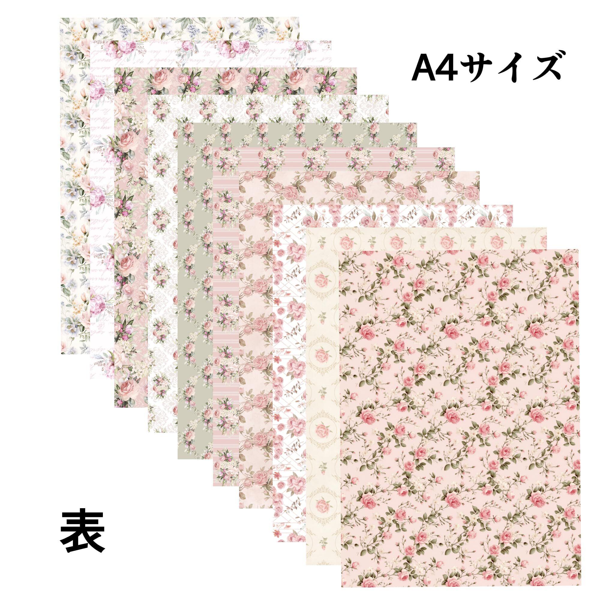 A4サイズのオリジナルデザインペーパー です。両面印刷。ピンク系のエレガントなフラワーのセット。可愛いデザインです。両面お好きな柄をお使いください。 コピー用紙よりも厚め0.12mmの上質紙90kgを使用。 包装紙、コラージュ素材、ブックカバー、台紙、工作、POP、表紙、などなど使い道自由です。 ※パソコン上の色味と現実の色味は異なる見え方がある場合がございます。
