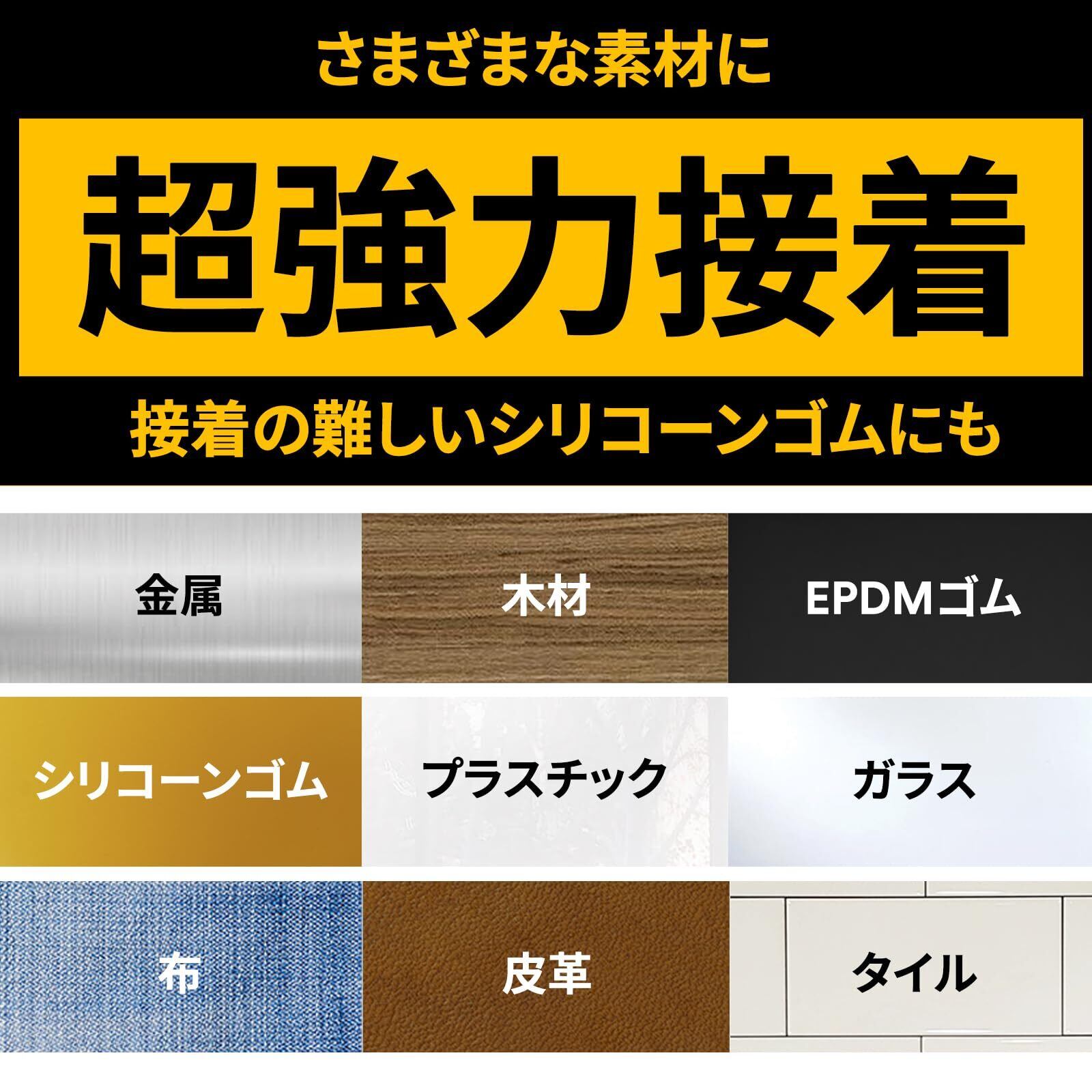 さらにもっとも接着が難しいといわれるシリコーンゴムに至るまで、様々な素材を接着したい時に、これ一本で対応できる高性能な接着剤です。