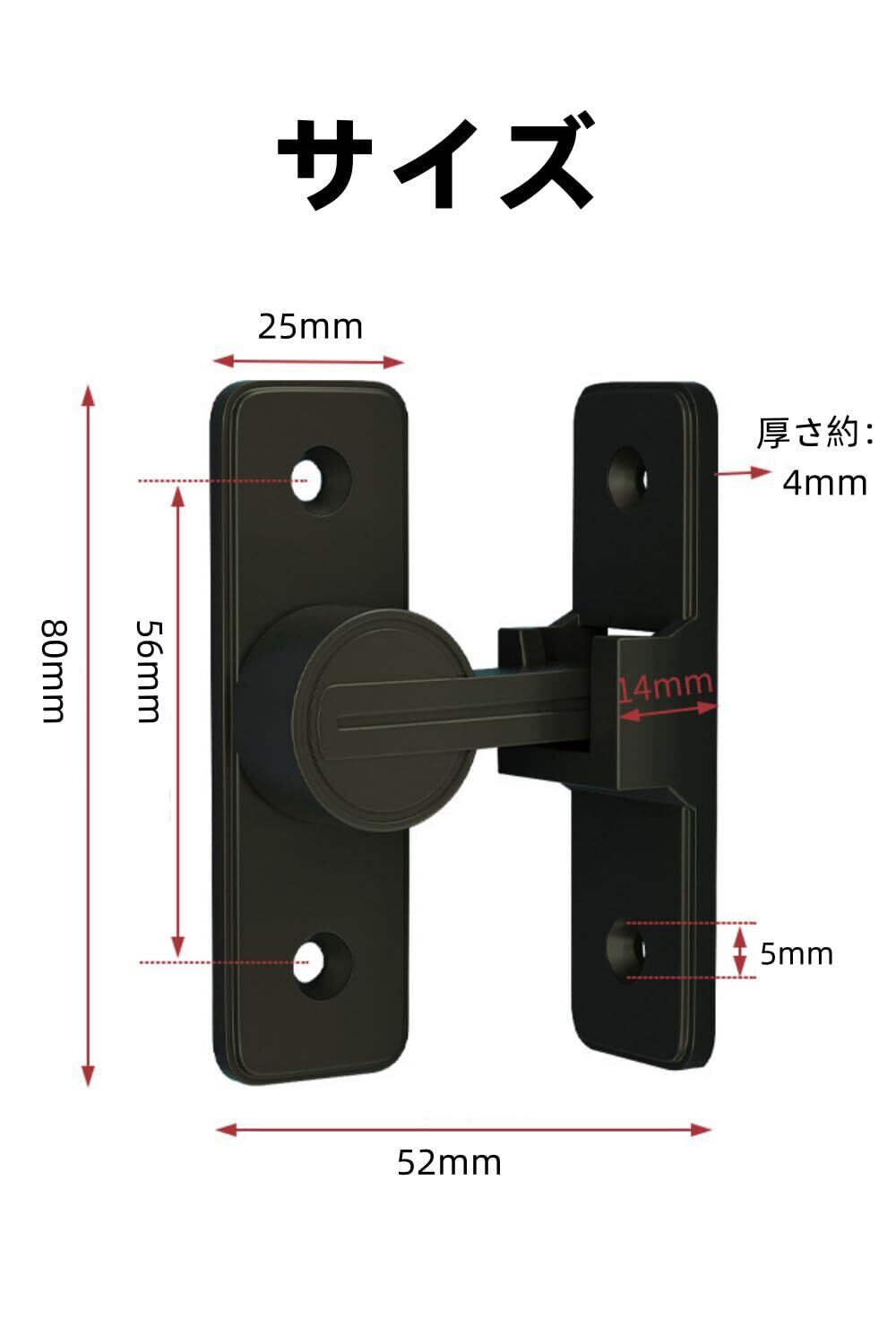 ドアロック 90度 ドアバックル 亜鉛合金 ドア留め金ロック 後付け 回転式 フリップラッチロック スライディングドア 引き戸 鍵 ロック 耐震ラッチ 防犯 部屋 窓 玄関用 (ブラック 無蛍光 90度) | hananoki