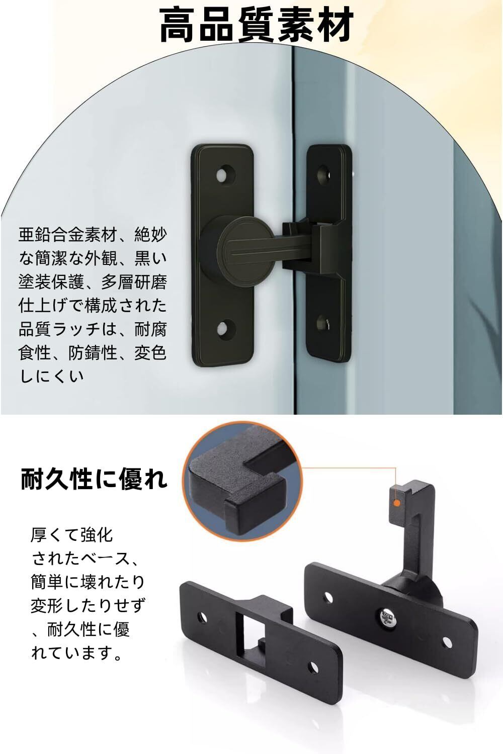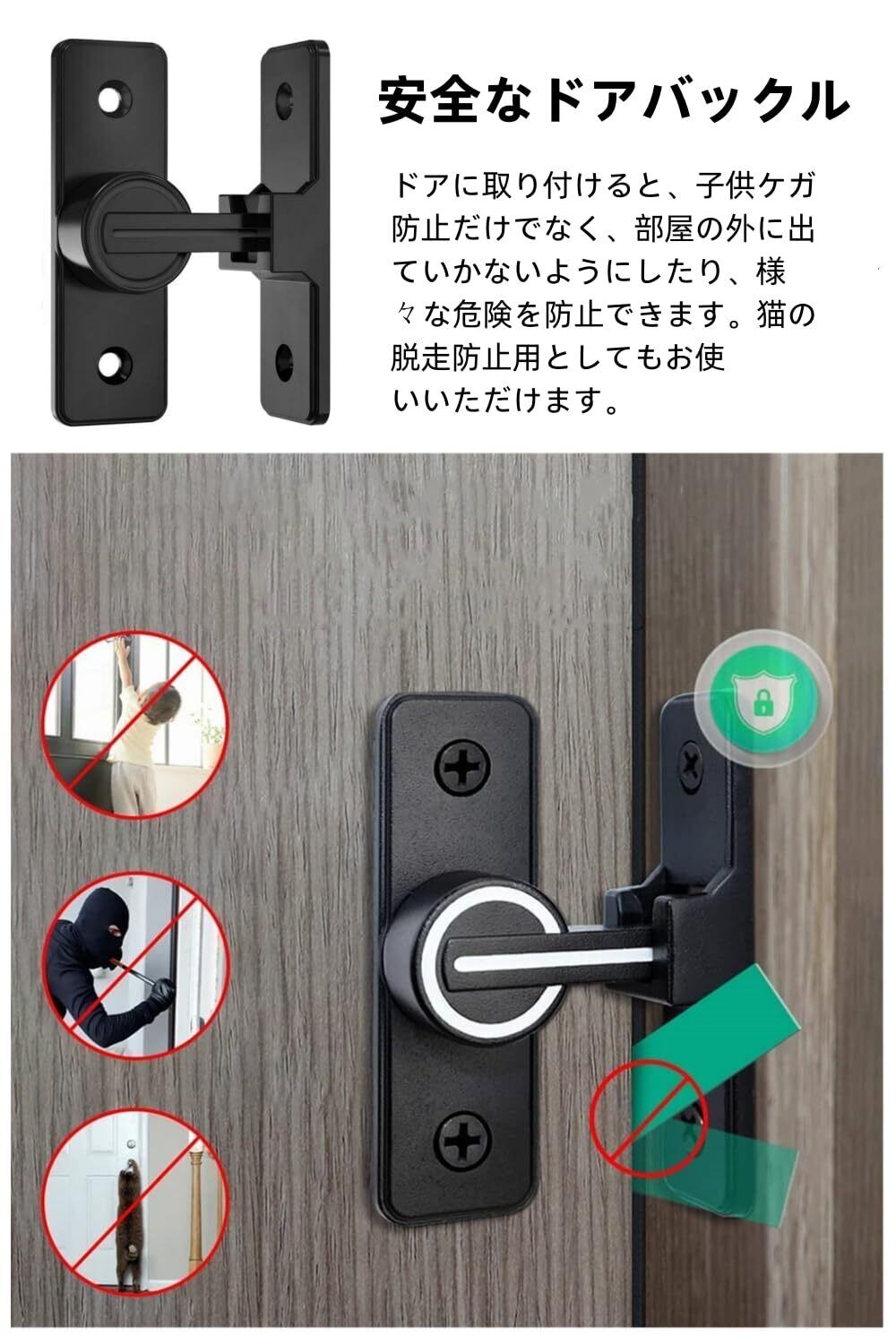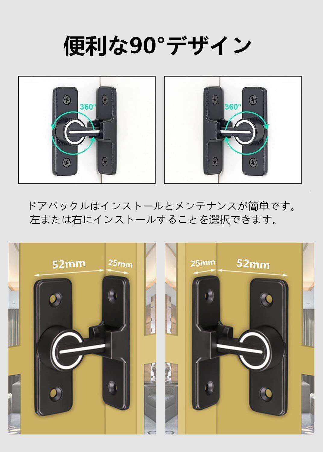 ドアロック 90度 ドアバックル 亜鉛合金 ドア留め金ロック 後付け 回転式 フリップラッチロック スライディングドア 引き戸 鍵 ロック 耐震ラッチ 防犯 部屋 窓 玄関用 (ブラック 無蛍光 90度)