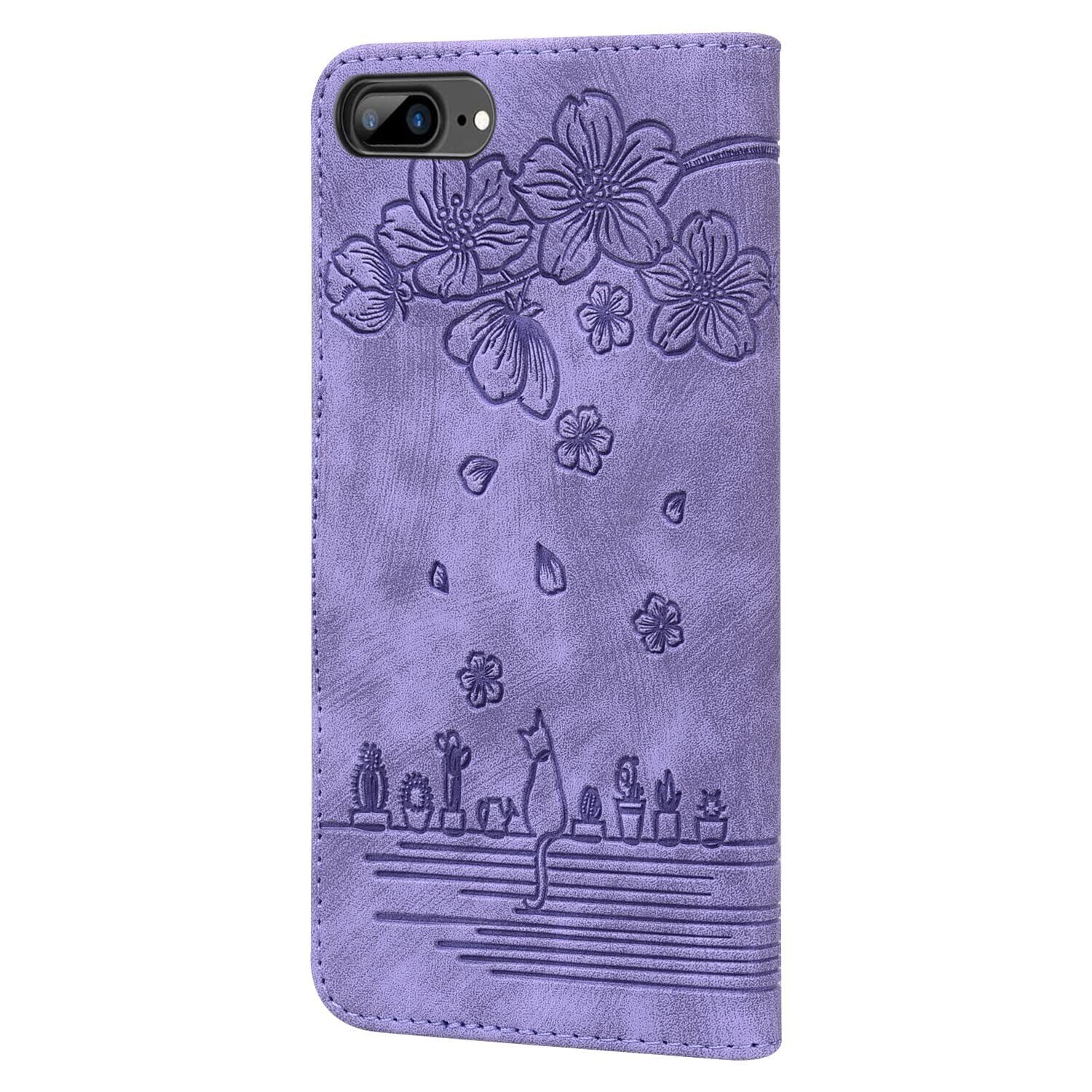 Torske iPhone 8 Plus ケース 手帳型 さくら柄 iPhone8plus・7plus iPhone6splus・6plus 用カバー アイフォン7 プラス ケース 油絵デザイン ヴィンテージカラー 快適な質感 財布型 iPhone 6s Plus スマホケース カード収納あり 使う便利性 全面保護 iPhone 8plus 携帯ケース 5.5インチ 紫の