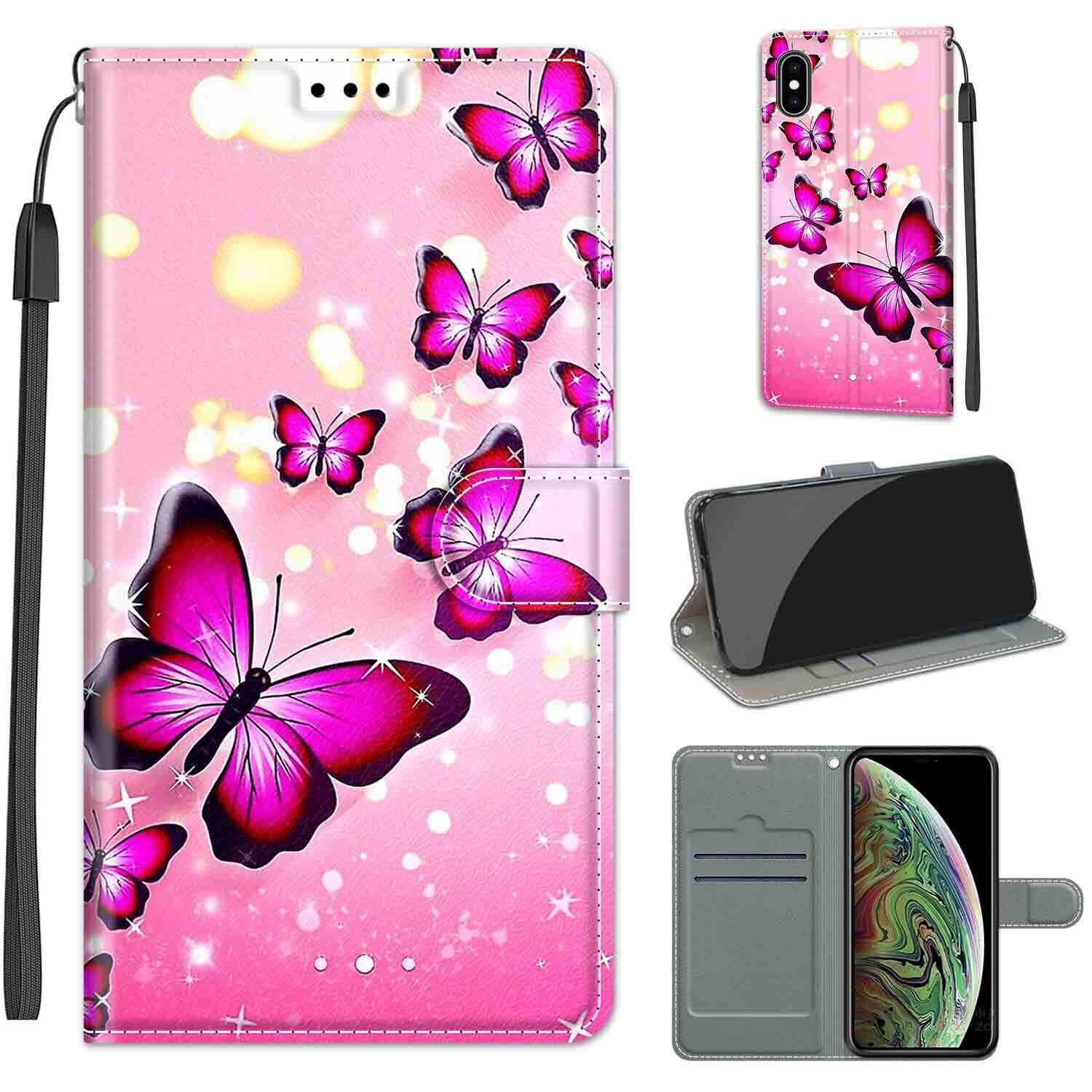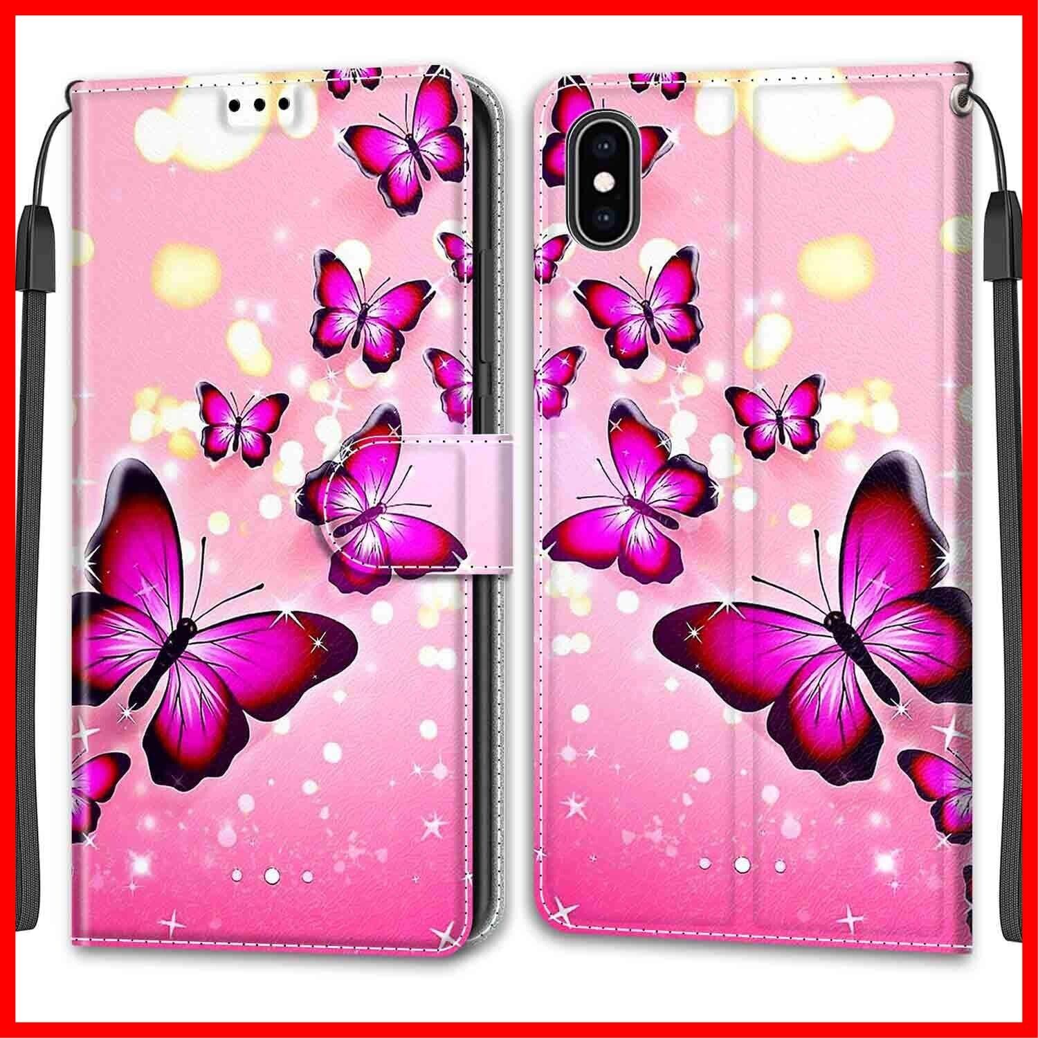 KENHONER iPhone XS Max ケース 手帳型 対応 薄型 超軽量 高級PUレザー ケース 保護ケース カードポケット付き マグネット式 スタンド機能 耐衝撃 スマートフォンケース アイフォンXS Max ケース (ピンクの蝶)
