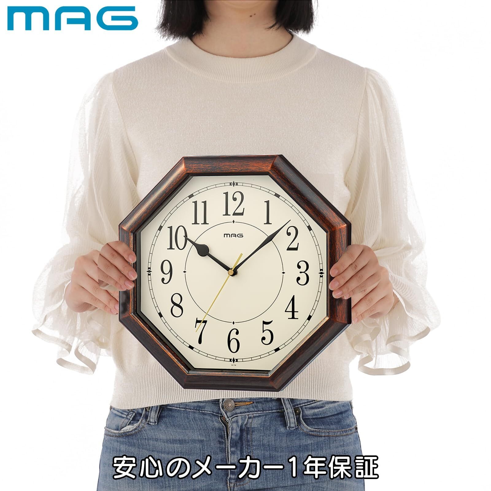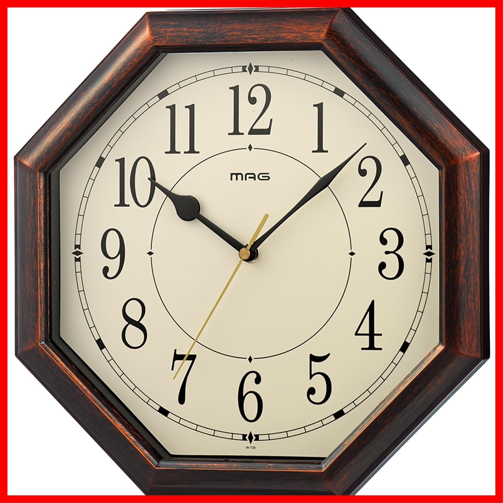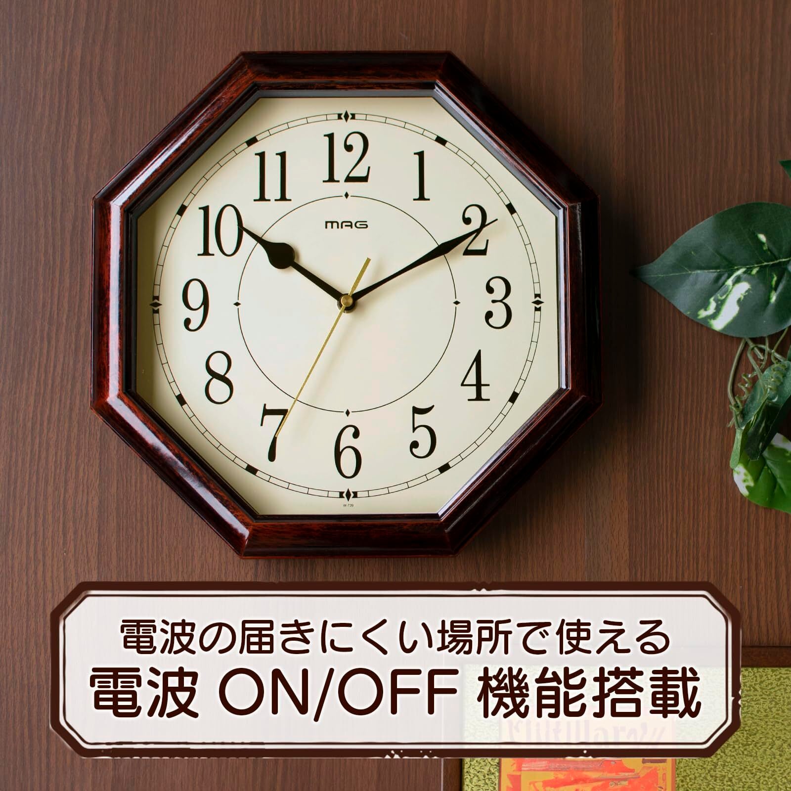 MAG(マグ) 掛け時計 壁掛け時計 アナログ 電波時計 電波受信ON/OFF 静音 連続秒針 約30.0×30.0㎝ 八角形 和室 木目調 ブラウン ネオオクターゴ W-739 BR-Z ノア精密