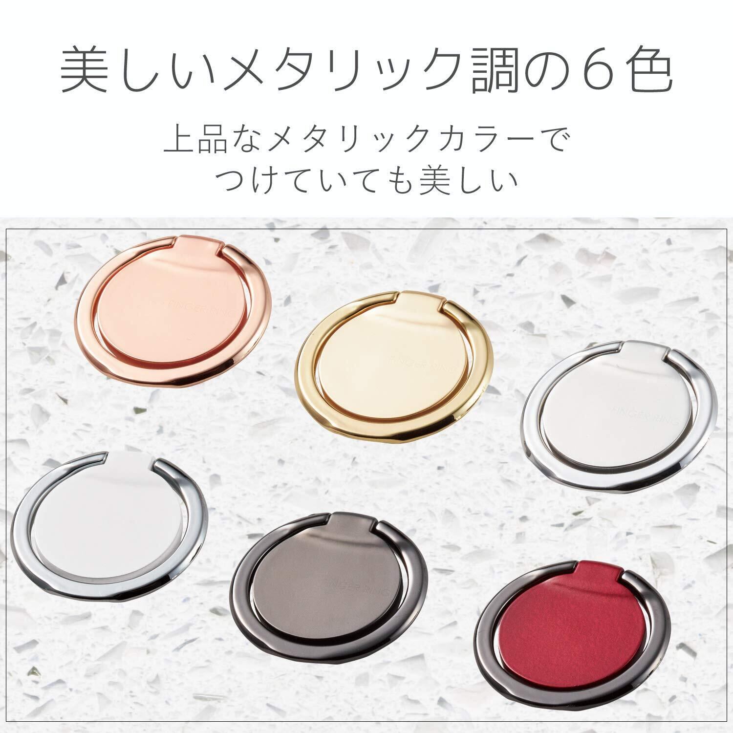 ●背面に貼りつけることで指を通してスマートフォンを持つことができ、スマートフォンの落下を防ぐフィンガーリングです。●最薄部約2.5mmで、ポケットの出し入れなどでも邪魔にならない極薄設計です。※設計値(粘着シート含まず)●持ち方に合わせてリングが回転し、持ちやすい角度に調整可能です。●動画視聴時にリング部分がスタンドになる、便利なスタンド機能がついています。●エレコム社試験をクリアした吸着シートにより、使用中にスマートフォンから剥がれるのを防止します。