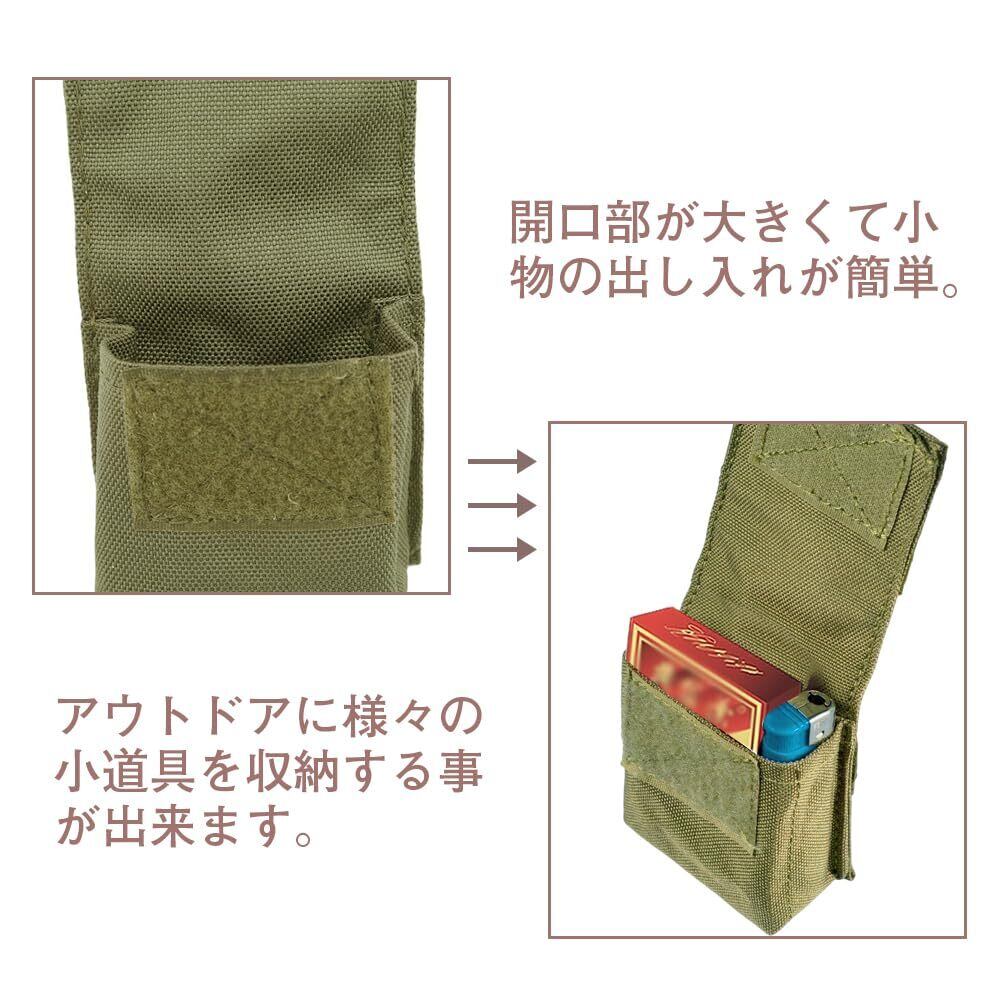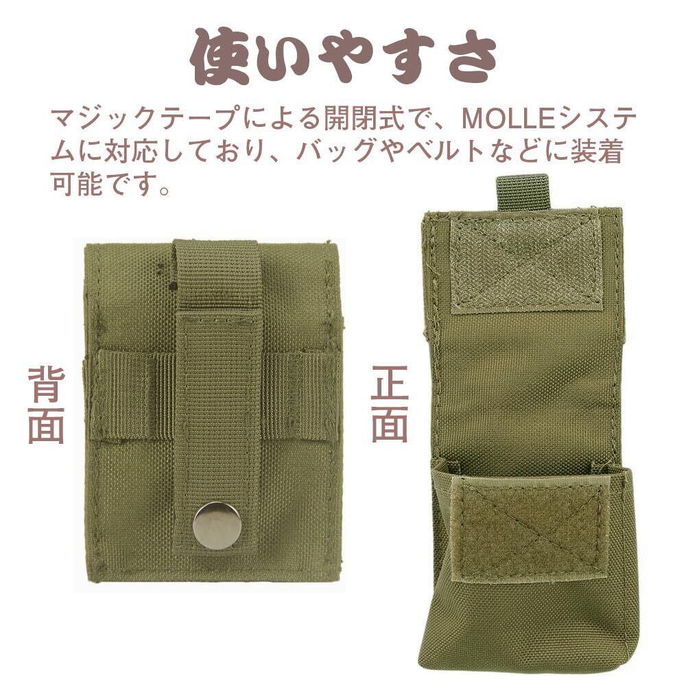 【使いやすさ】マジックテープによる開閉式で、MOLLEシステムに対応しており、バッグやベルトなどに装着可能です。大きな開口部で、小物の出し入れが簡単です。