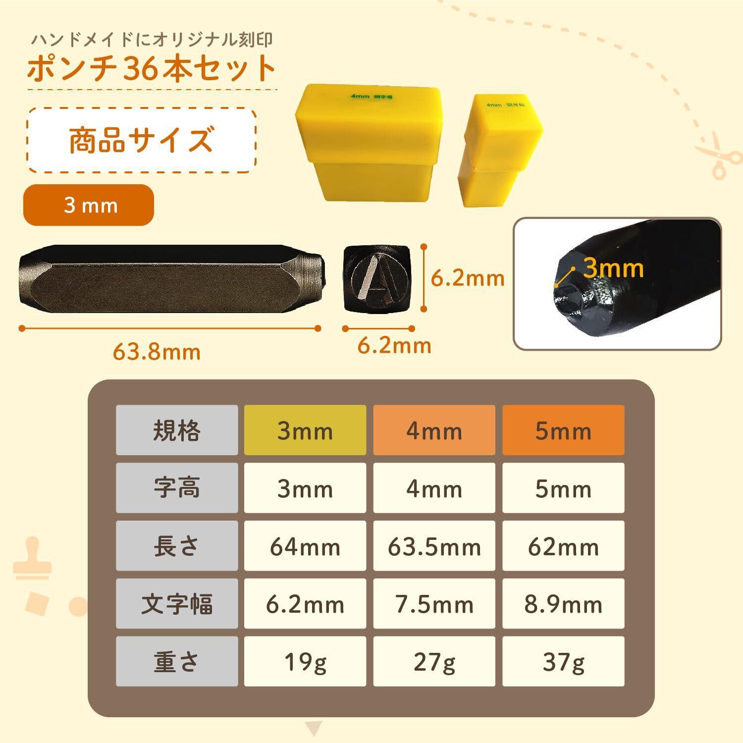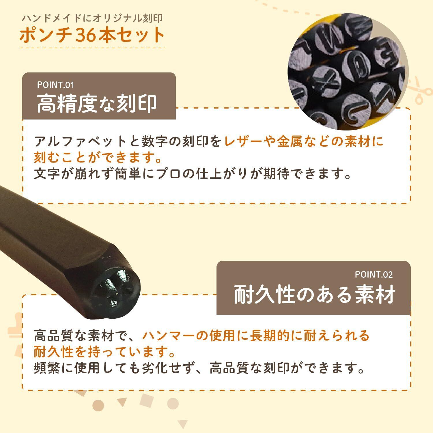 【airara】 刻印セット 打刻印 ポンチ アルファベット 数字 英字 レザー クラフト カービング 手作り DIY 用 (4mm 英字+数字)