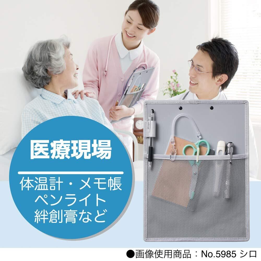 小物の持ち運びに便利なメッシュポケットがついたクリップボード
