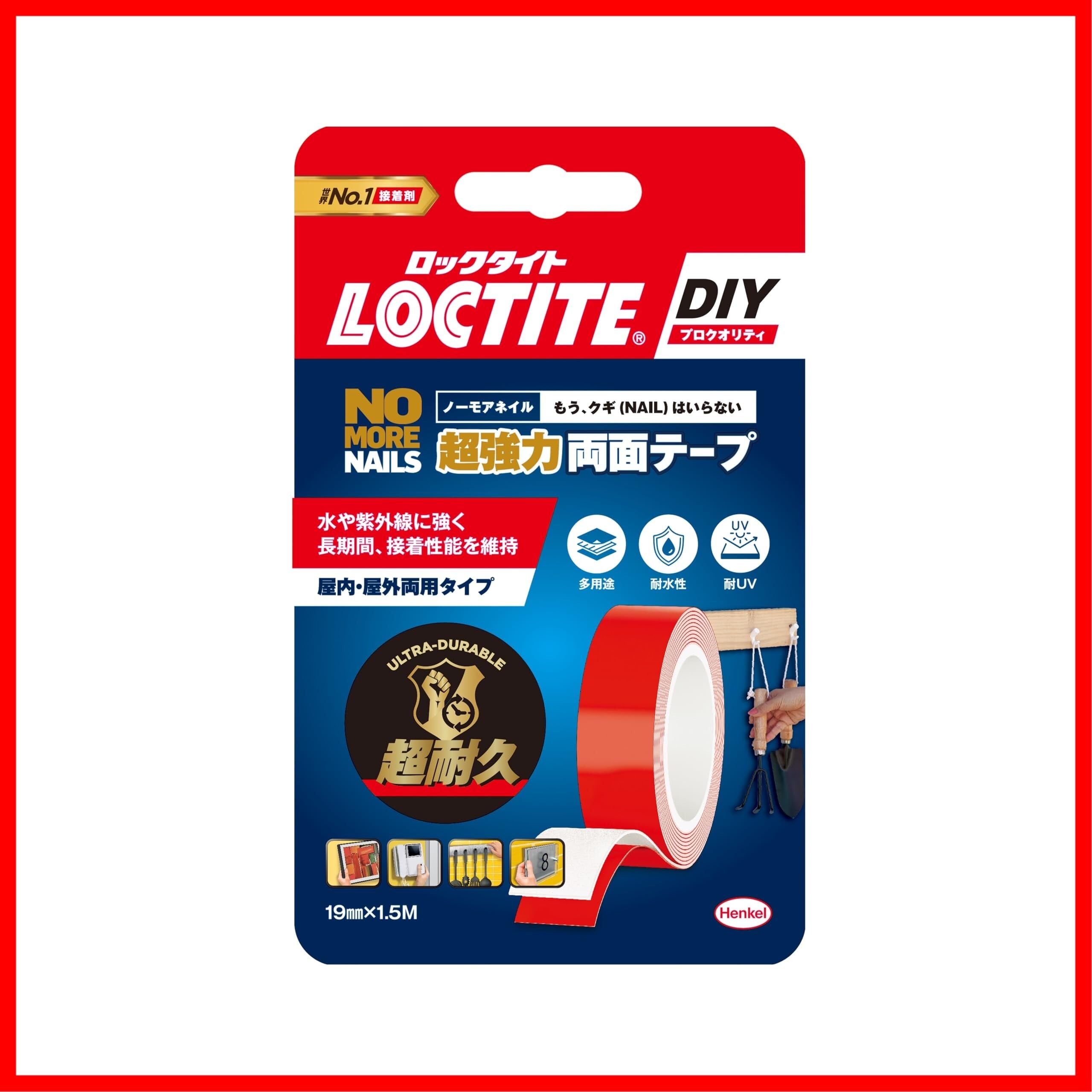 LOCTITE(ロックタイト) ノー・モア・ネイル 超強力両面テープ 19mm x 1.5M - 水や紫外線に強く長期間、接着性を維持