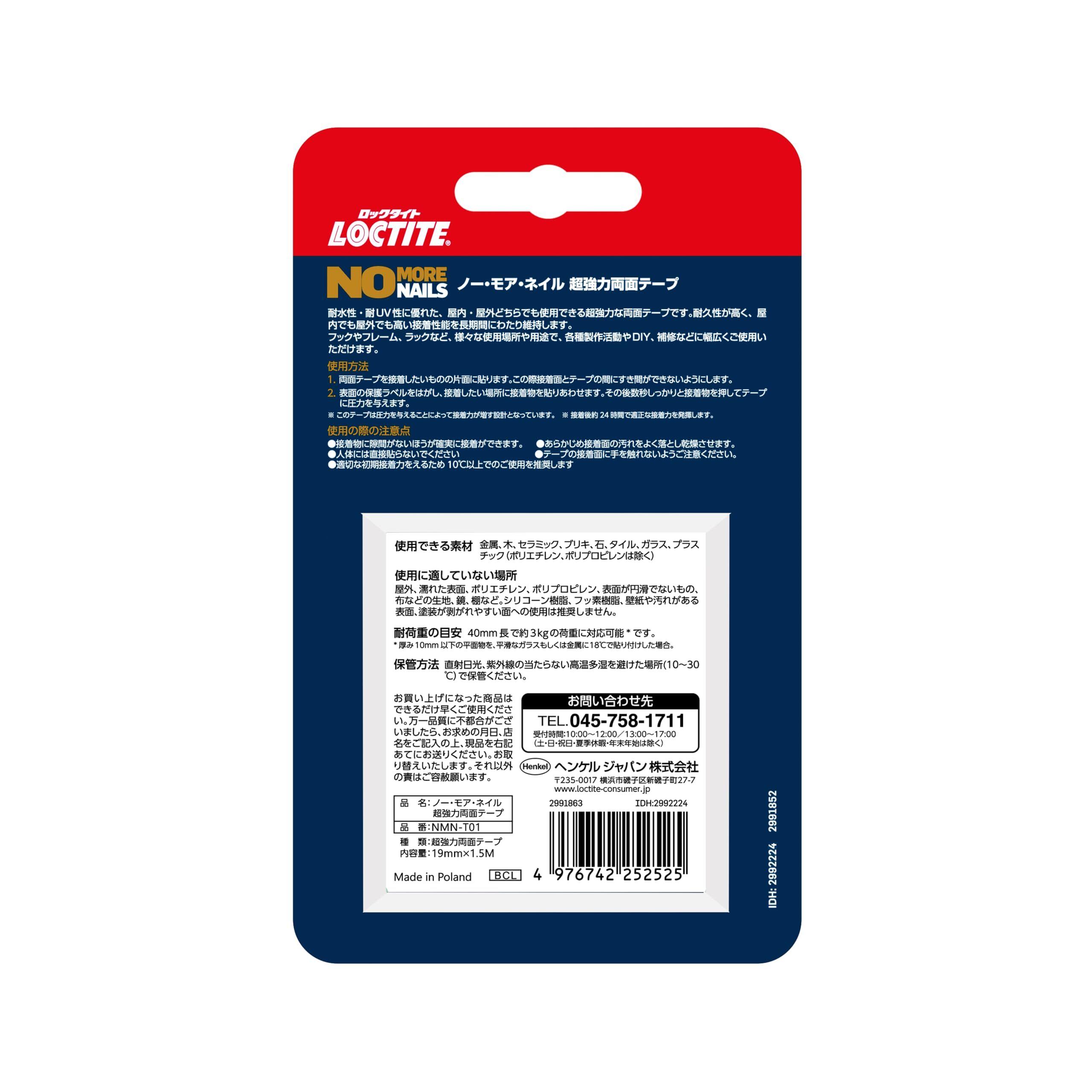 LOCTITE(ロックタイト) ノー・モア・ネイル 超強力両面テープ 19mm x 1.5M - 釘やネジが使えない場所に ノーモアネイル