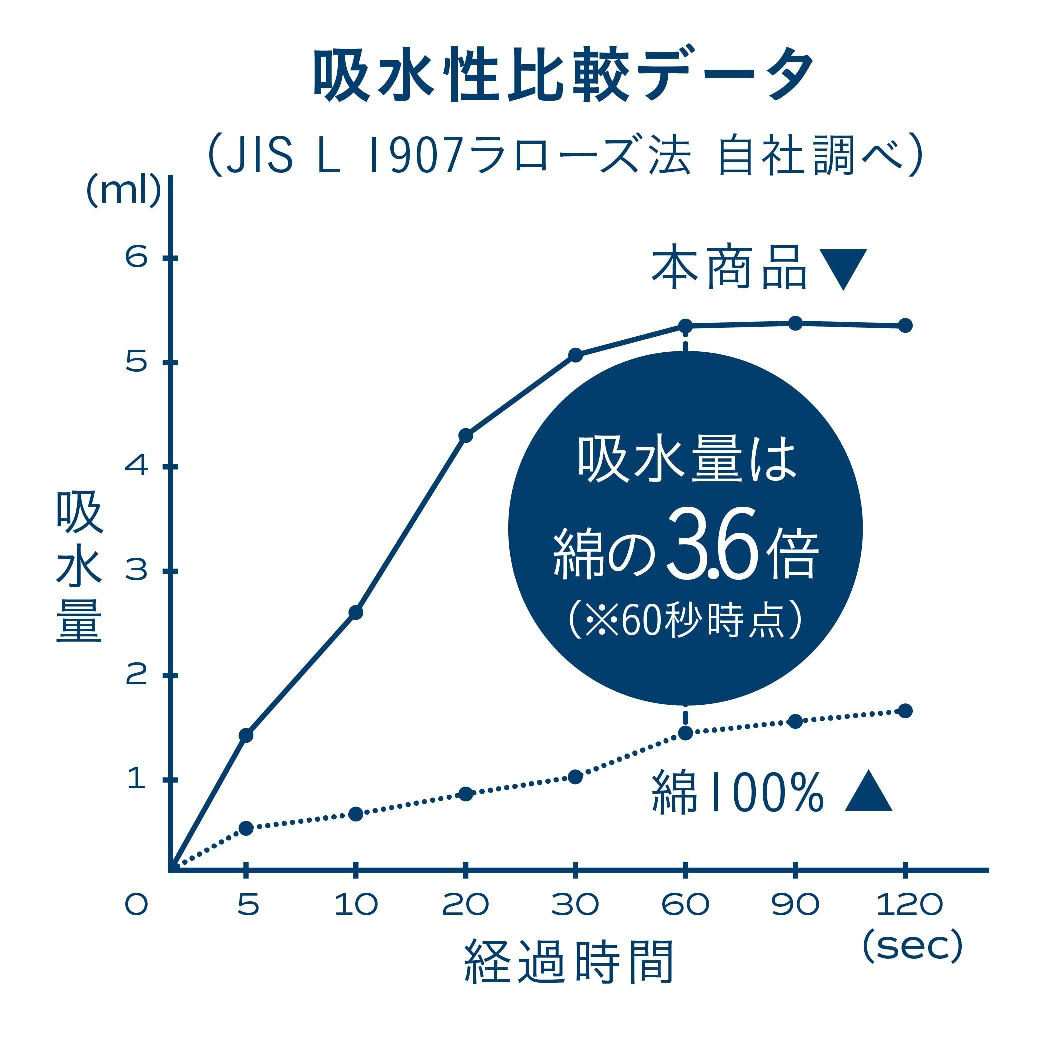 【綿の3.6倍の吸水力】水に触れた瞬間、サッと吸水してくれます。その吸水力はなんと綿のタオルの3.6倍!まるでタオルが肌に吸い付くように、水分をしっかり吸水してくれます。摩擦による肌や髪へのダメージ軽減にもなり、タオルドライの時短になります。