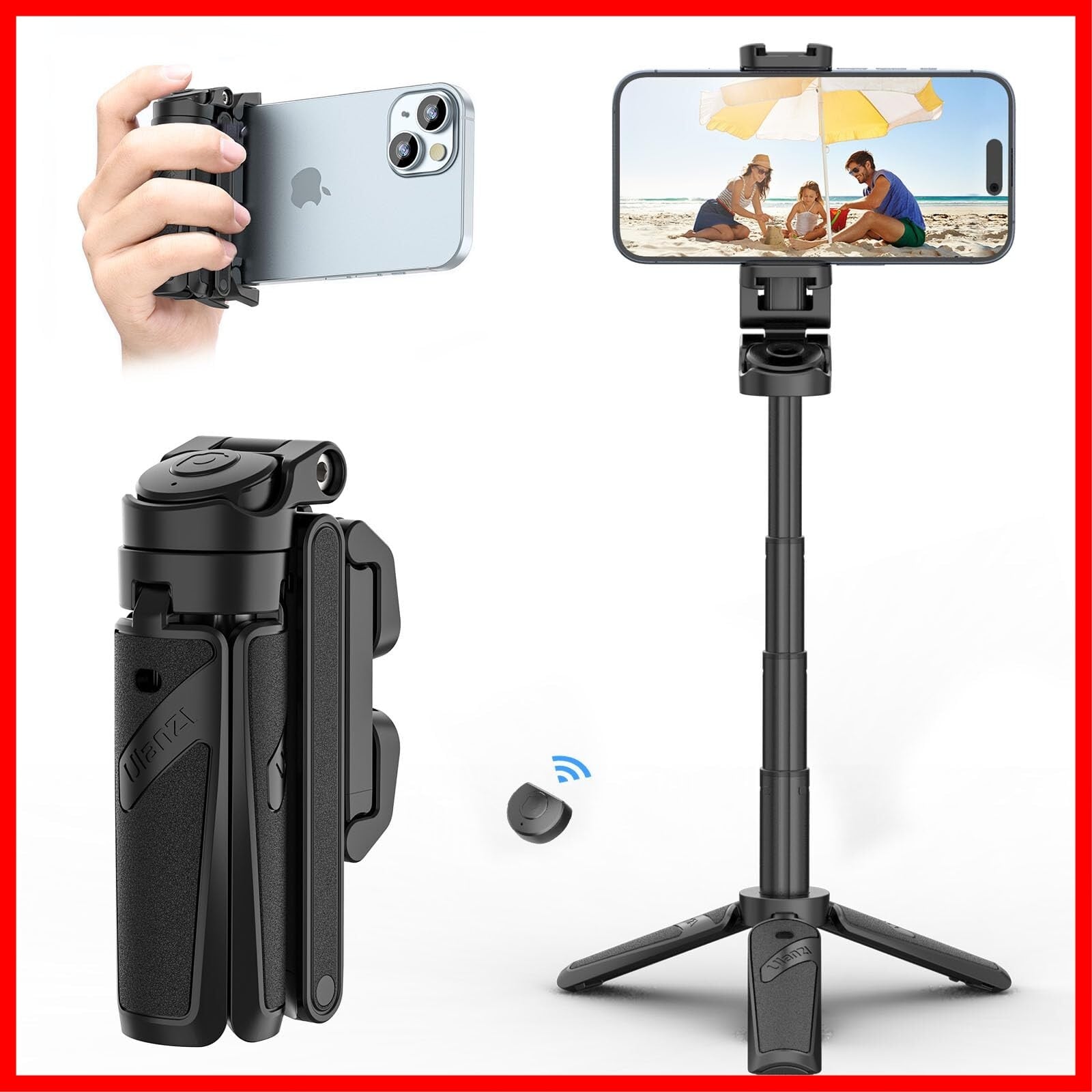 Ulanzi JJ02 自撮り棒 多機能スマホグリップ 三脚【2024新開発 ・超ミニ】4段階伸縮 折りたたみ式 スマートフォンホルダー スマホ 三脚 リモコン付き コールドシュー付き コンパクト iPhone Androidに対応 写真/旅行/動画を撮る/セルフィー/生放送に最適