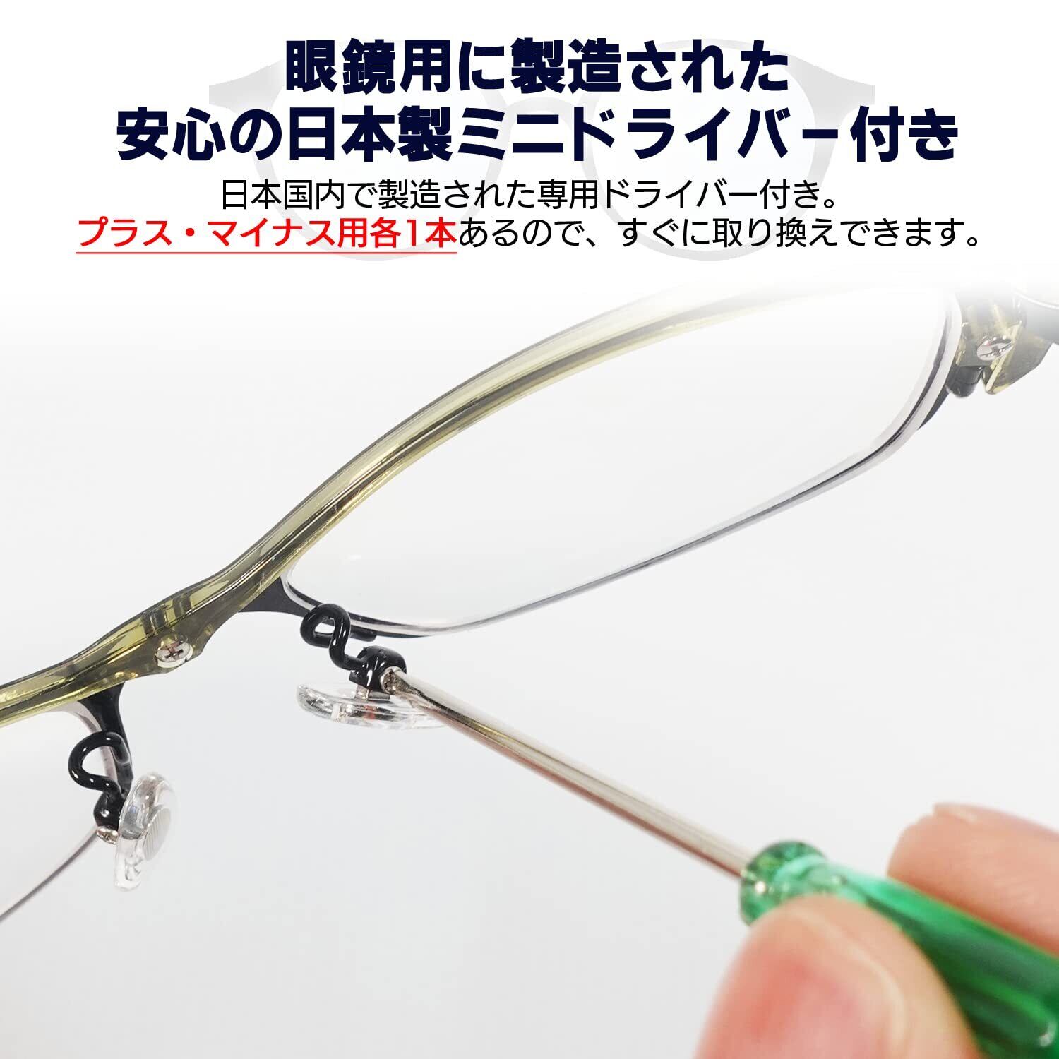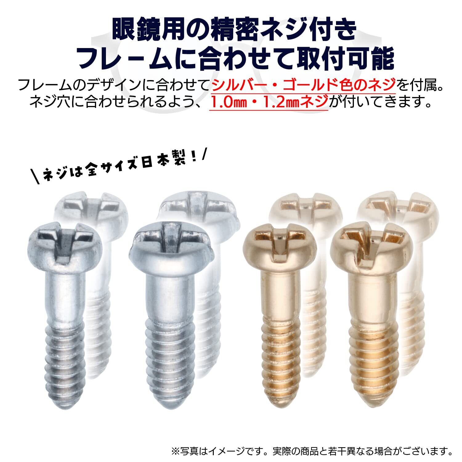 付属品:■日本製ミニドライバー(プラス・マイナス各一本)眼鏡の小さな精密ネジを逃さずキャッチして回せます。■日本製精密ネジ(シルバー・ゴールド/1.0mm径 1.2mm径各/各1組ずつ)プロ仕様の精密ネジを各色サイズ違いで付属。