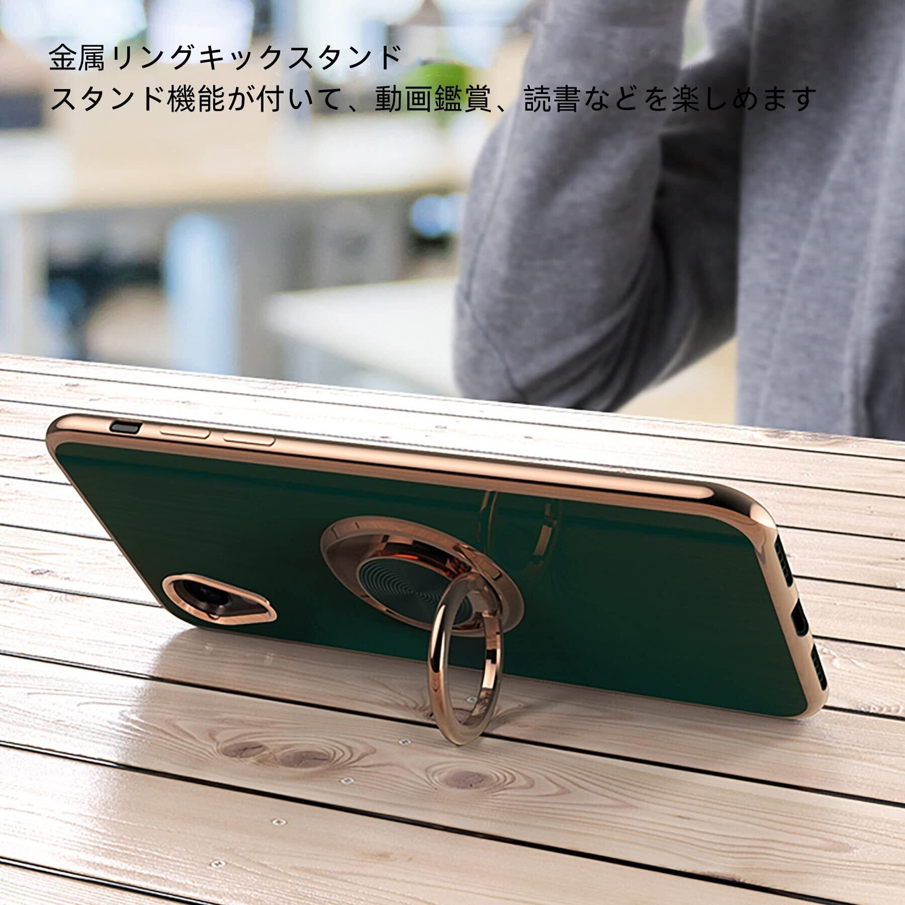 【スタンド機能】後ろで嵌め込み式リング付き、伝統的なリングと比較して、スマートフォンの水平安定性を維持することができます。ケースを横向きにするとスタンド機能になり、360度回転と100度調節可能です。マグネット対応金属板採用し、車載ホルダーに強く吸着することもできます。