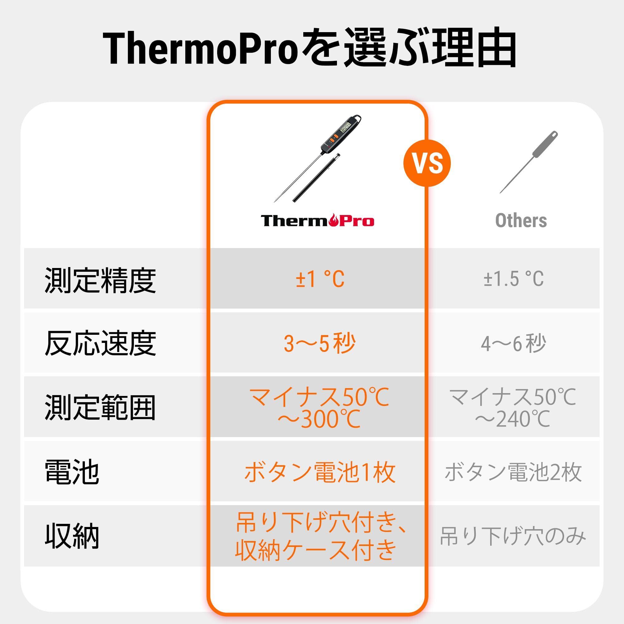 ThermoPro 温度計 料理 デジタル温度計 -50℃~300℃ 油 お肉 オーブン 天麩羅 コーヒー 揚げ物 チョコレート バーベキューなどの温度管理 サーモメーター TP516