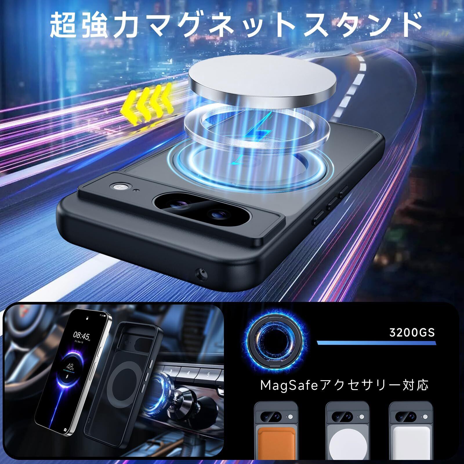 【MagSafe対応・ワイヤレス充電】MagSafeテクノロジーに対応しており、MagSafe充電器との接続がスムーズで、デバイスをしっかり固定します。充電時も安定し、エネルギー損失なく急速充電が可能です。ご注意:Qi規格の充電器には対応していませんので、MagSafe充電器のご使用をおすすめします。また、車載ホルダーやスタンド機能としても活躍し、ドライブ中の操作が非常に便利です。