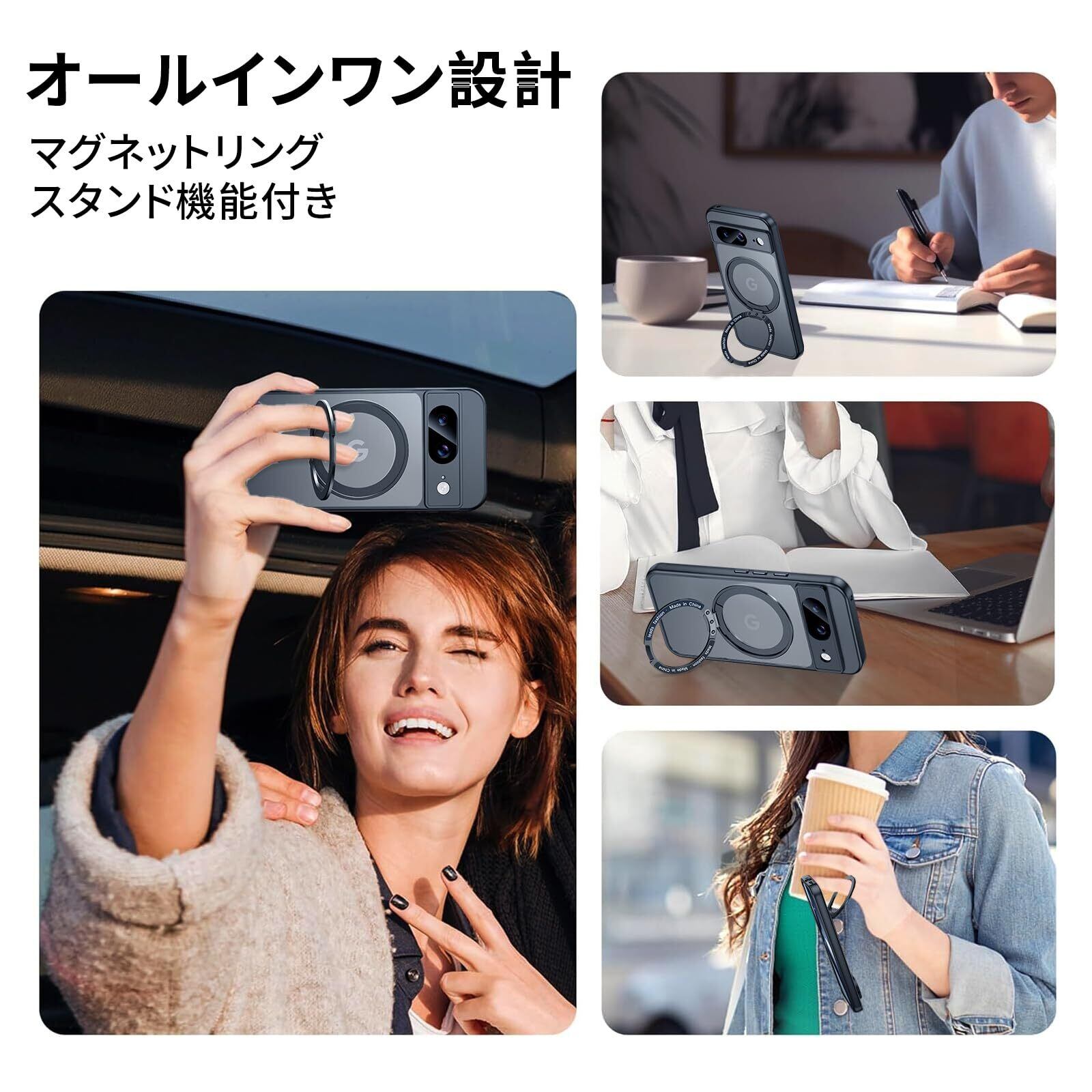 【米軍MIL規格・Magsafe対応】Google Pixel 8 用 ケース MagSafe対応 リング360°回転スタンド機能 縦横両対応 半透明 黄ばみ防止 ワイヤレス充電 ピクセル8 スマホケース レンズ保護 耐衝撃 携帯カバー グーグルピクセル8 カバー 6.2 インチ マグネット搭載 車載ホルダー マグセーフ対応 おしゃれ (ブラック) | hananoki