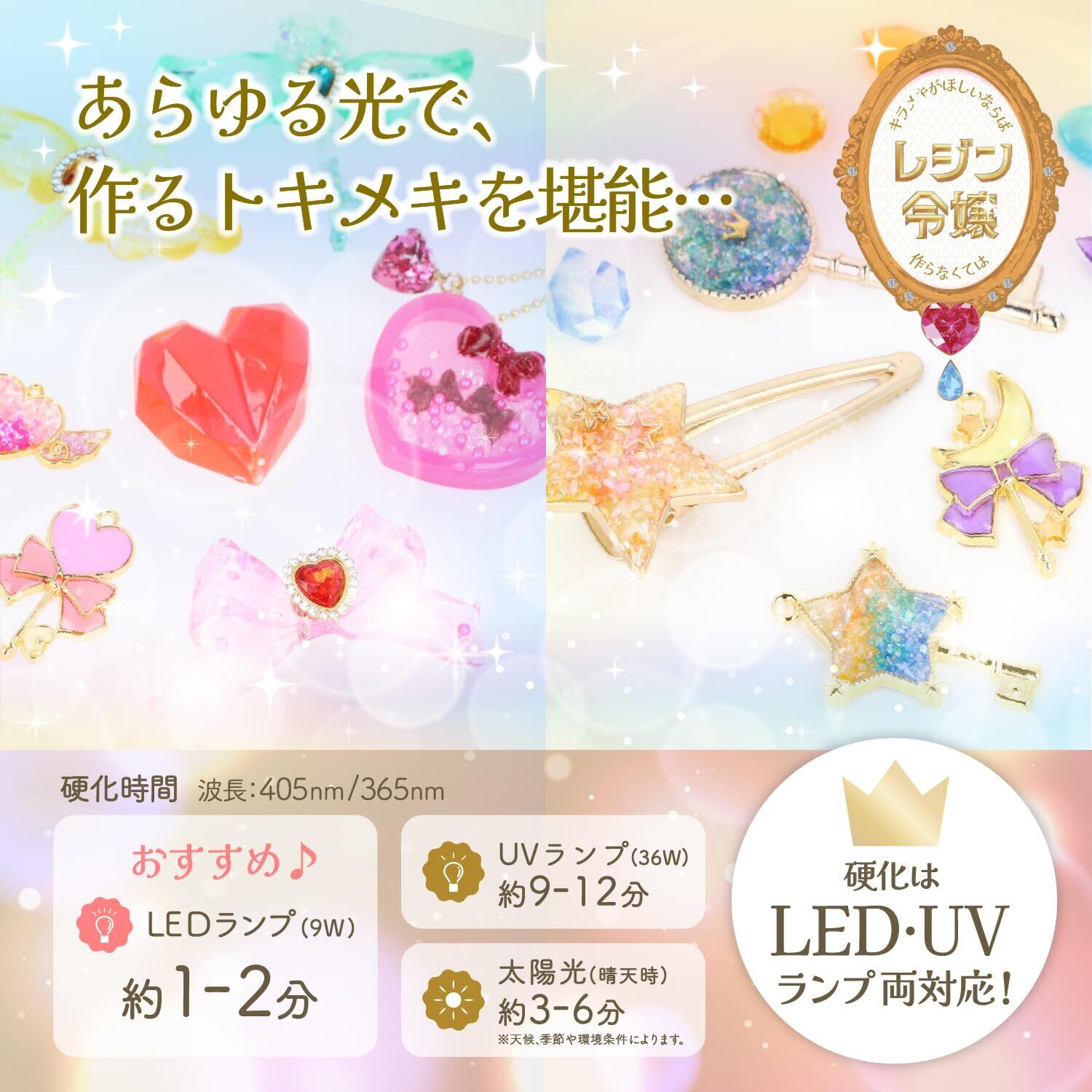 「キラメキがほしいならば 作らなくては」キラキラ輝く未来の自分をレジンで表現しませんか?粘度はさらりと扱いやすく、モールド制作におすすめのLEDランプで硬化するレジン液です。
